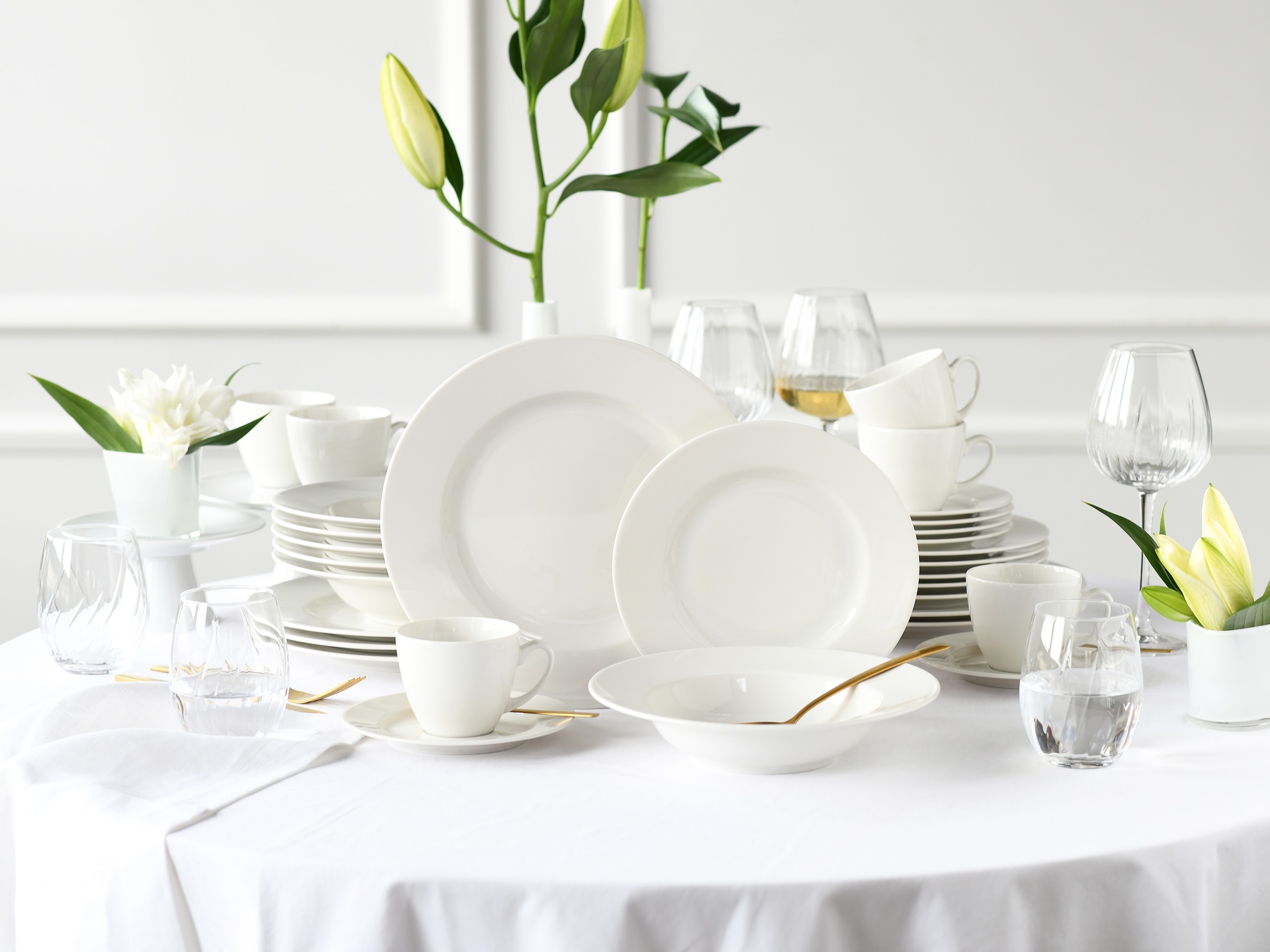 - WEISS UND GOLD GEHT IMMER: Das Geschirr inszeniert sich in einem strahlenden Weiß mit Goldrand, dazu noch gefertigt aus hochwertigem Porzellan in europäischer Spitzenqualität.