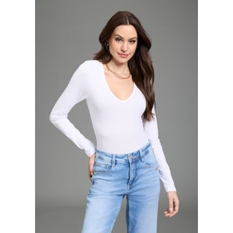 Kombistarkes Damen-3/4-Arm-Shirt der Marke Laura Scott. Mit einem hüftbedeckenden und normal breiten Schnitt. Kombinierbar für das Freizeit-Outfit. Durch die weiche Qualität des Single Jerseys ist das Oberteil angenehm zu tragen.