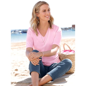 Erlebe den ultimativen Komfort mit dem bugatti Damen T-Shirt aus einem weichem Viskose-Jersey-Mix. Der atmungsaktive Stoff und die kurzen Ärmel sorgen für eine lockere Passform, während der klassische Rundhalsausschnitt Deinen Look perfekt abrundet - ein unverzichtbares Basic für Deine Gaderobe.