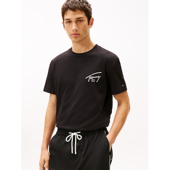 Klassisches Herren-T-Shirt der Marke Tommy Jeans. Mit einem normalen Schnitt. Damit lassen sich peppige und legere Looks kreieren. Das Oberteil bietet viel Bewegungsfreiheit durch den dehnbaren und zarten Single Jersey.