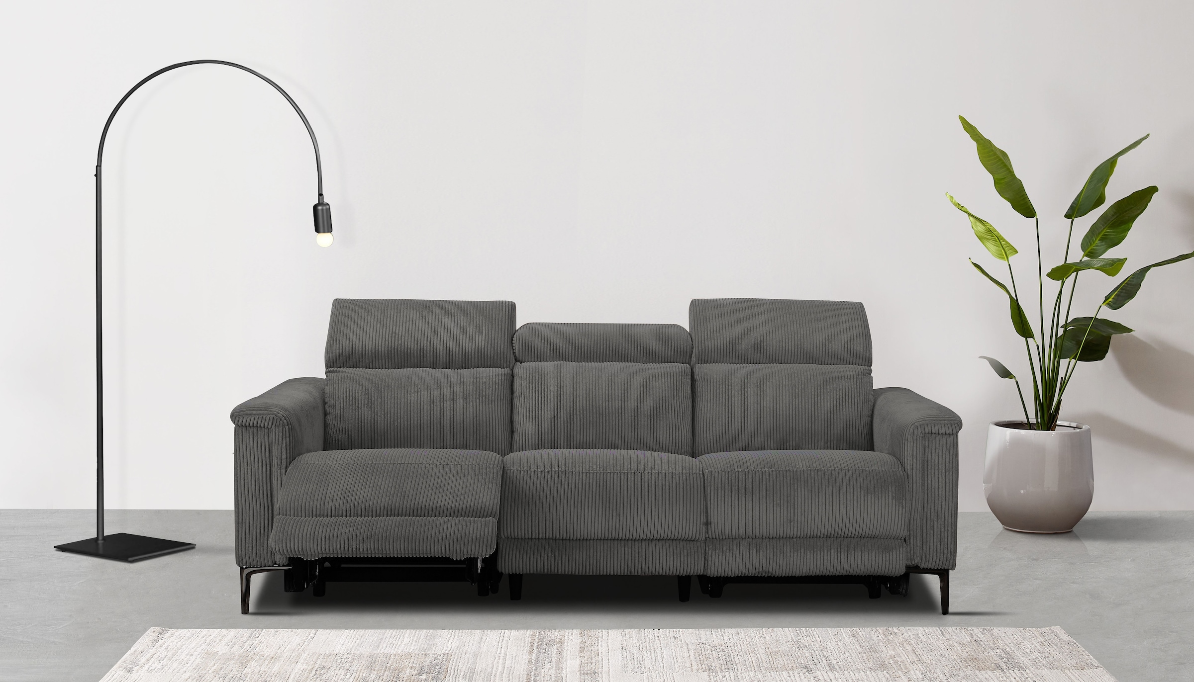 OTTO home 3-Sitzer »SKAANE Cord-Sofa, 229 cm, manuelle u. elektrische Relaxfunktion« Relax-Funktion in 2 Sitzen, Kopfteilverstellung, Federkernpolsterung