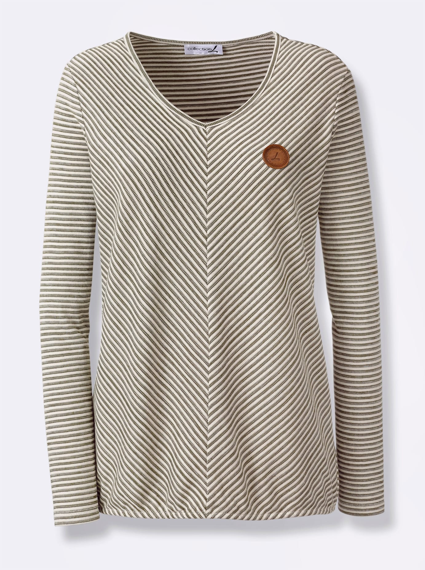 Ein Basic mit dem gewissen Etwas! Trageangenehmes Stehkragen-Shirt mit gewellten Abschlüssen am Kragen, an den langen Ärmeln und am Saum. 100% Baumwolle. Maschinenwäsche.