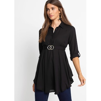 Schön schlicht? Schlich schön! Langarm-Pullover im nach unten hin leicht ausgestellten Schnitt – modisch und kaschierend! 100% Polyacryl. Maschinenwäsche.
