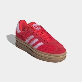 Der Gazelle Bold Schuh ist ein zeitloser Klassiker, der für mühelose Schlichtheit und Style steht. Dieser Schuh, dessen Geschichte bis in die Mitte der 60er Jahre zurückreicht, ist seit Langem ein fester Bestandteil des Originals Sortiments und bekannt für seine klare Silhouette und seinen zeitlosen Charme. In dieser Saison bringen wir den Gazelle auf ein neues Niveau und feiern sein ikonisches Design mit einzigartigen, markanten Proportionen, die dem unverwechselbaren Style des Originals treu bleiben. Dieser für Lifestyle-Enthusiasten entwickelte Schuh mit regulärer Passform hat einen Schnürverschluss, der sicheren und bequemen Tragekomfort garantiert. Die Gummiaußensohle schenkt zuverlässigen Grip und macht diesen Schuh zu einer guten Wahl für deine täglichen Abenteuer. Er ist aus hochwertigem Wildleder gefertigt und bietet ein luxuriöses Tragegefühl, unterstützt durch das Obermaterial aus Leder und Synthetik, das Strapazierfähigkeit und Komfort gewährleistet. Das gebrandete Zungenlogo wird durch das dreifache Gazelle Branding auf der Schuhsohle ergänzt, das einen weiteren authentischen Akzent setzt. Tauche ein in die Welt von Originals mit diesem klassischen Schuh, der die Verschmelzung von Mode und Funktion verkörpert. Bei adidas geht es um mehr als nur um Schuhe. Es geht um einen Lifestyle.