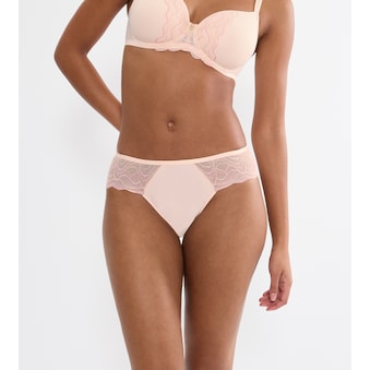 Dieser ungepolsterte Balconette-BH mit Bügel bietet mittlere Bedeckung mit Push-in- und leichtem Hebeeffekt. Mit seiner zarten italienischen Spitze und eingearbeiteten, stützenden Sicheln zur besseren Zentrierung der Brust, ist der BH die perfekte Kombination aus verführerischem Look und zuverlässigem Halt. Der ergonomische Bügel passt sich dem Körper optimal an und sorgt für puren Tragekomfort, während weite, verzierte Träger das Gewicht gleichmäßig über die Schultern verteilen. Dekorative goldfarbene Ringe setzen zudem einzigartige glamouröse Akzente.