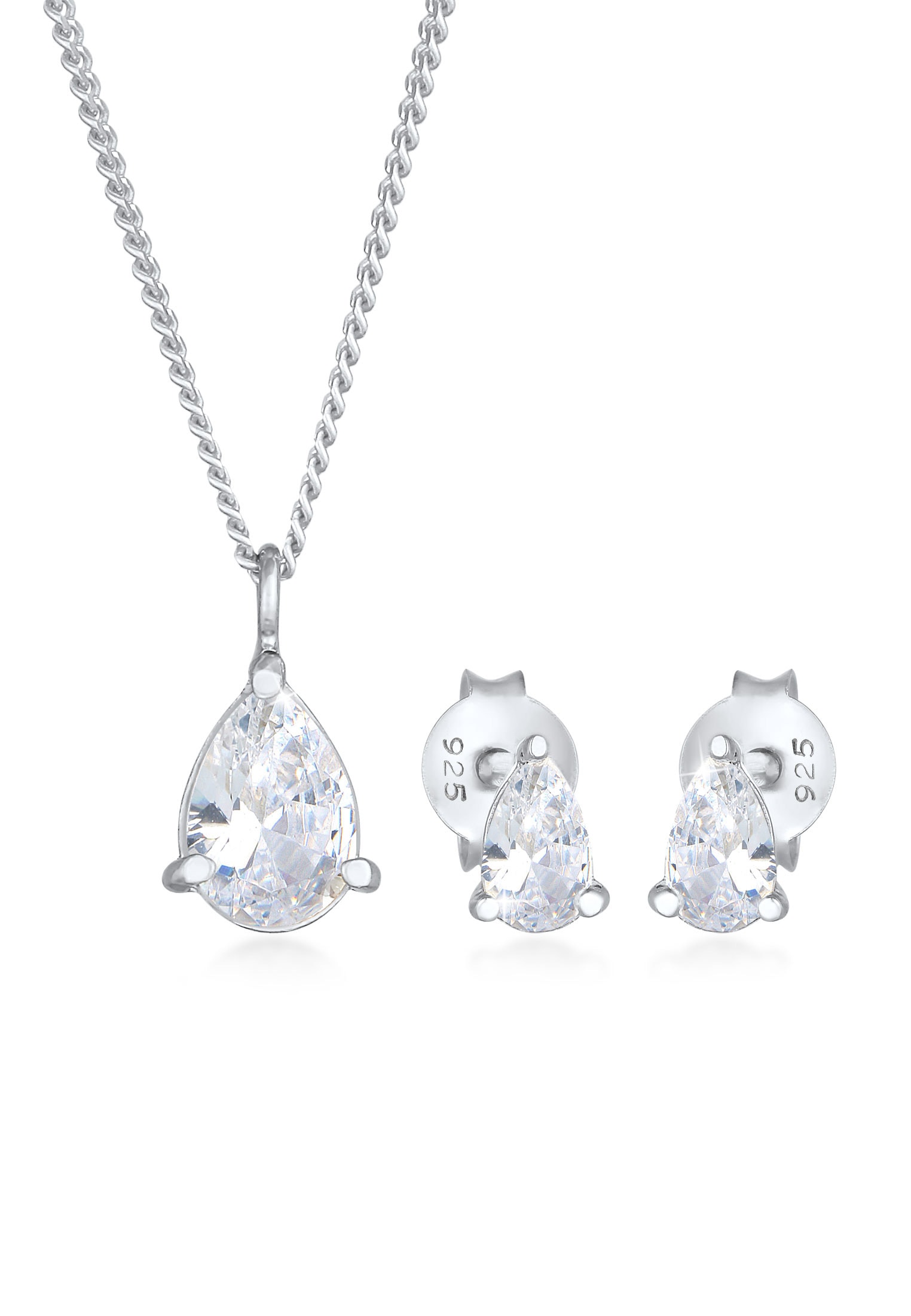 Firetti Ohrring und Ketten Set »Schmuck Geschenk Silber 925 Ohrringe Halskette mit Anhänger Solitär« (Set, 2 Stk. tlg.) mit Zirkonia (synth.)