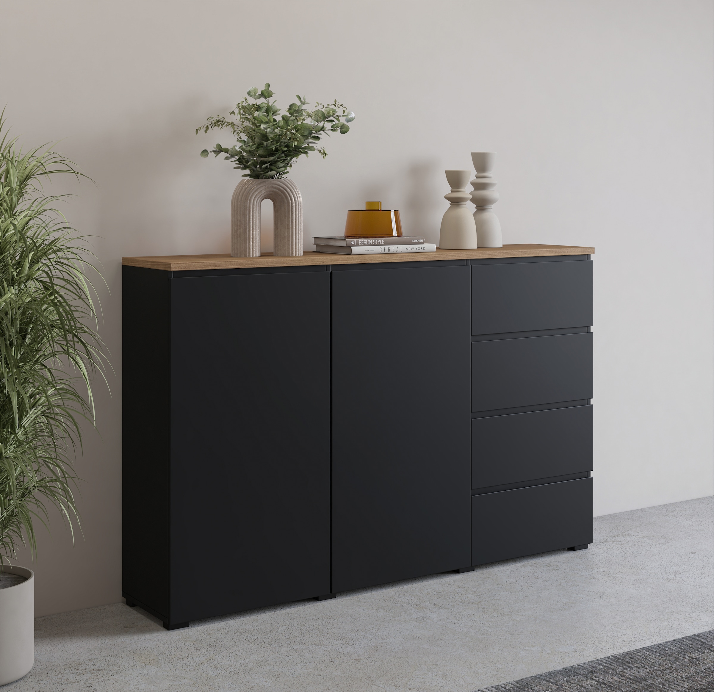 - Das Sideboard Modo aus hochwertigem, FSC-zertifiziertem Holzwerkstoff kombiniert modernes Design mit Zweckmäßigkeit.