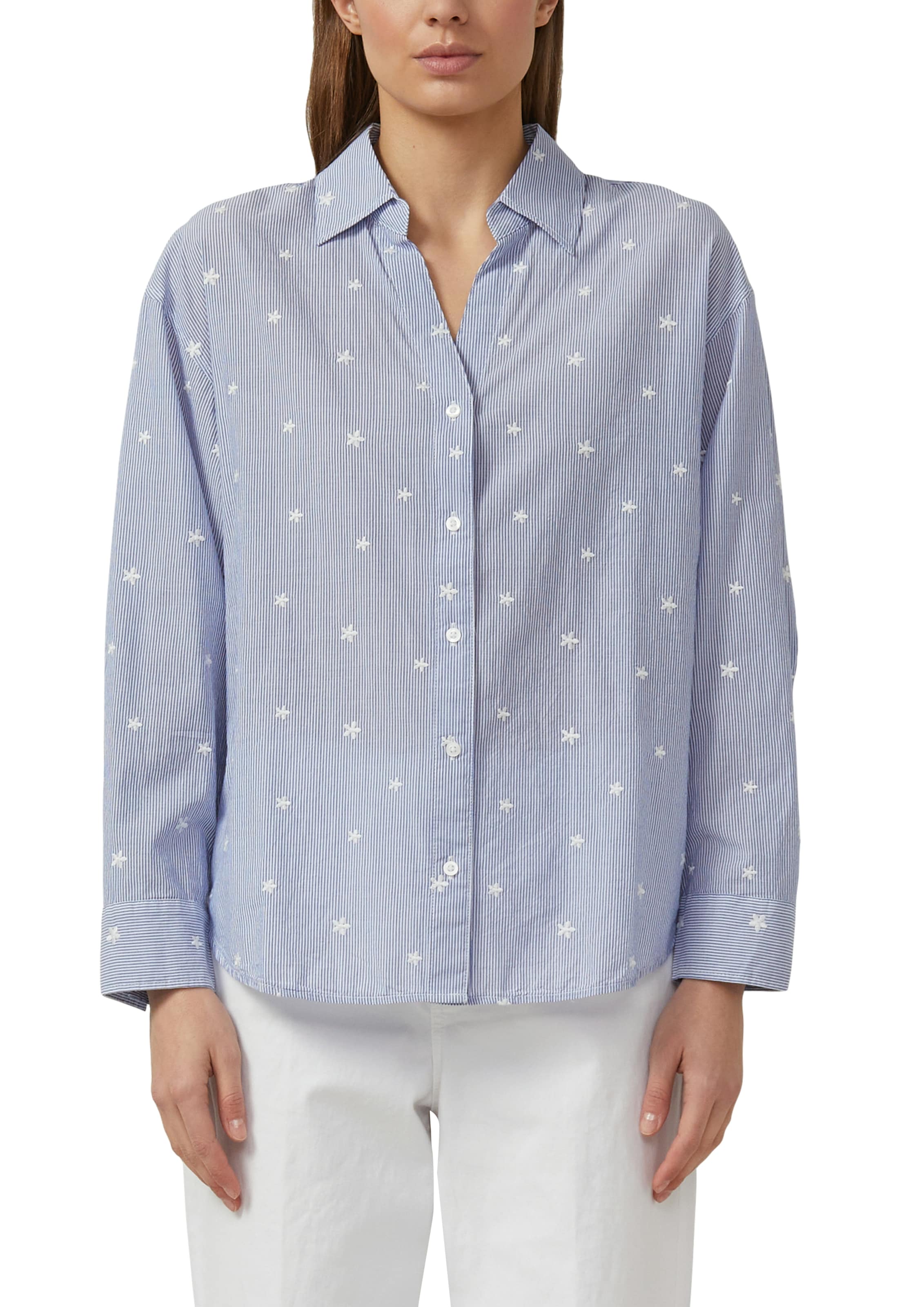 Unkomplizierte Damen-Langarmbluse der Marke s.Oliver im Streifen-Design. Mit einem hüftbedeckenden und lässig geschnittenen Schnitt. Außerdem hat die Bluse eine Knopfleiste. Der anschmiegsame und leichte Webstoff macht das Oberteil besonders bequem.