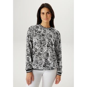 - Mit sportiven, gestreiften Rippbündchen an Rundhals-Ausschnitt, Saum und den langen Ärmeln