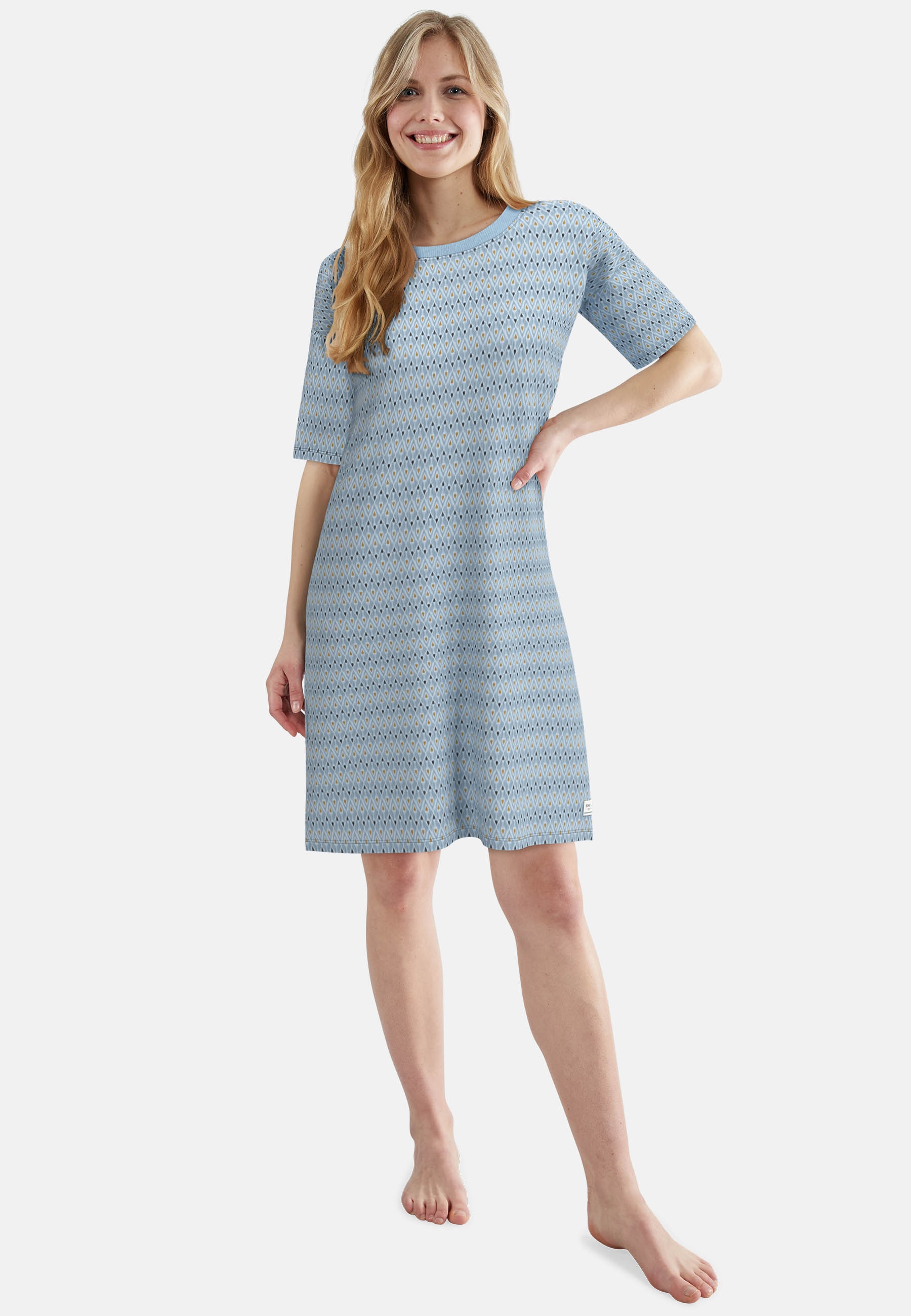 Leichter Damen Shorty in einer weichen Baumwoll-Elastan-Mischung. Viskose macht das Material fließend und besonders atmungsaktiv, ideal für warme Nächte. Das kurzärmelige Oberteil mit Rundhalsausschnitt und die kurze Hose bieten optimale Bewegungsfreiheit. Der kurze Pyjama eignet sich perfekt als Homewear oder Schlafanzug, da das elastische Material für einen angenehmen Sitz und komfortables Tragegefühl sorgt.