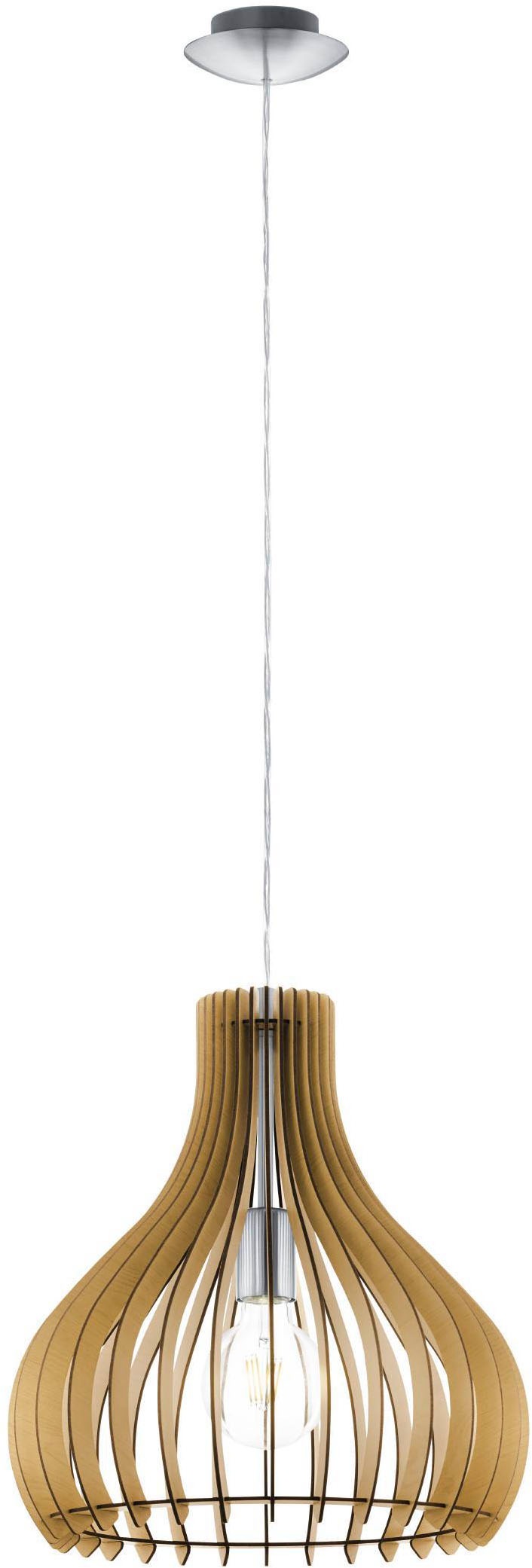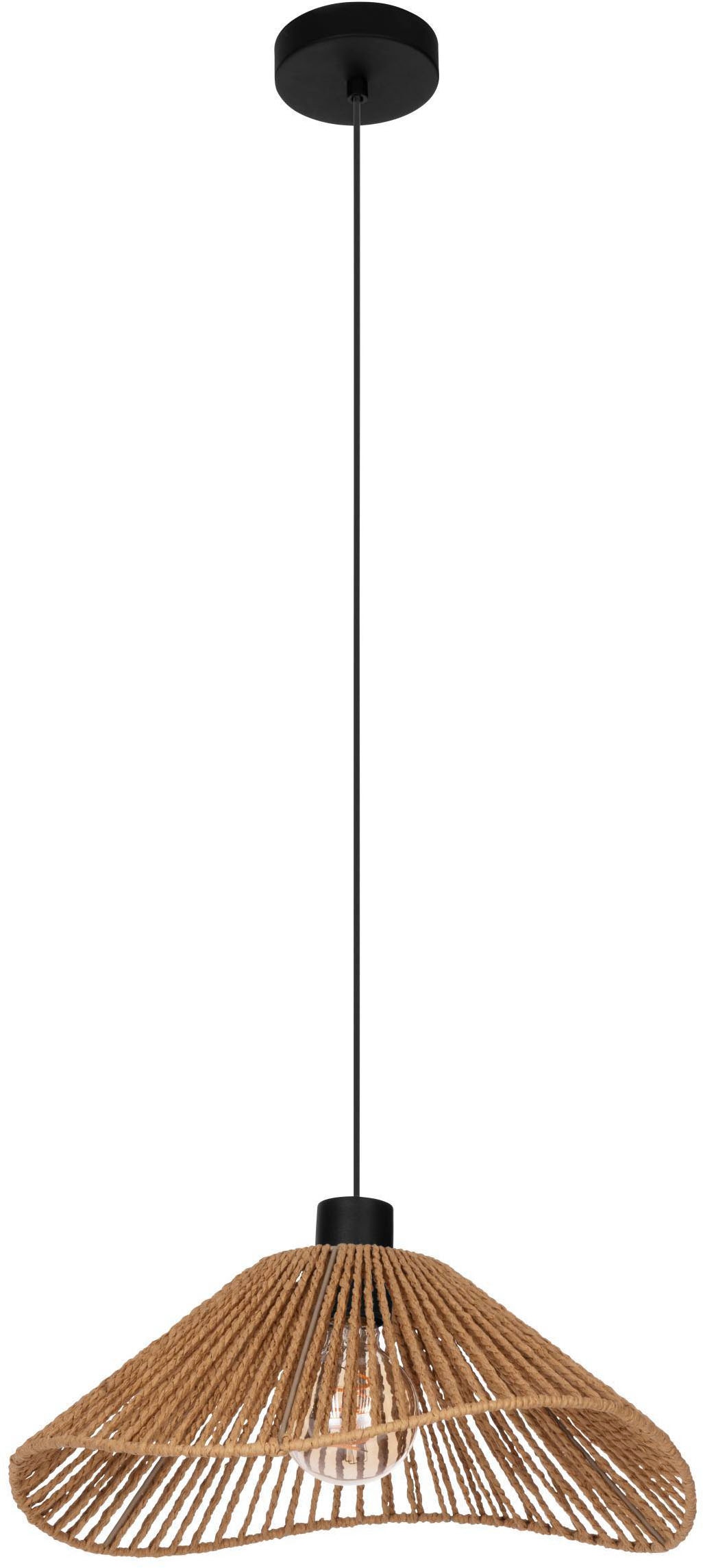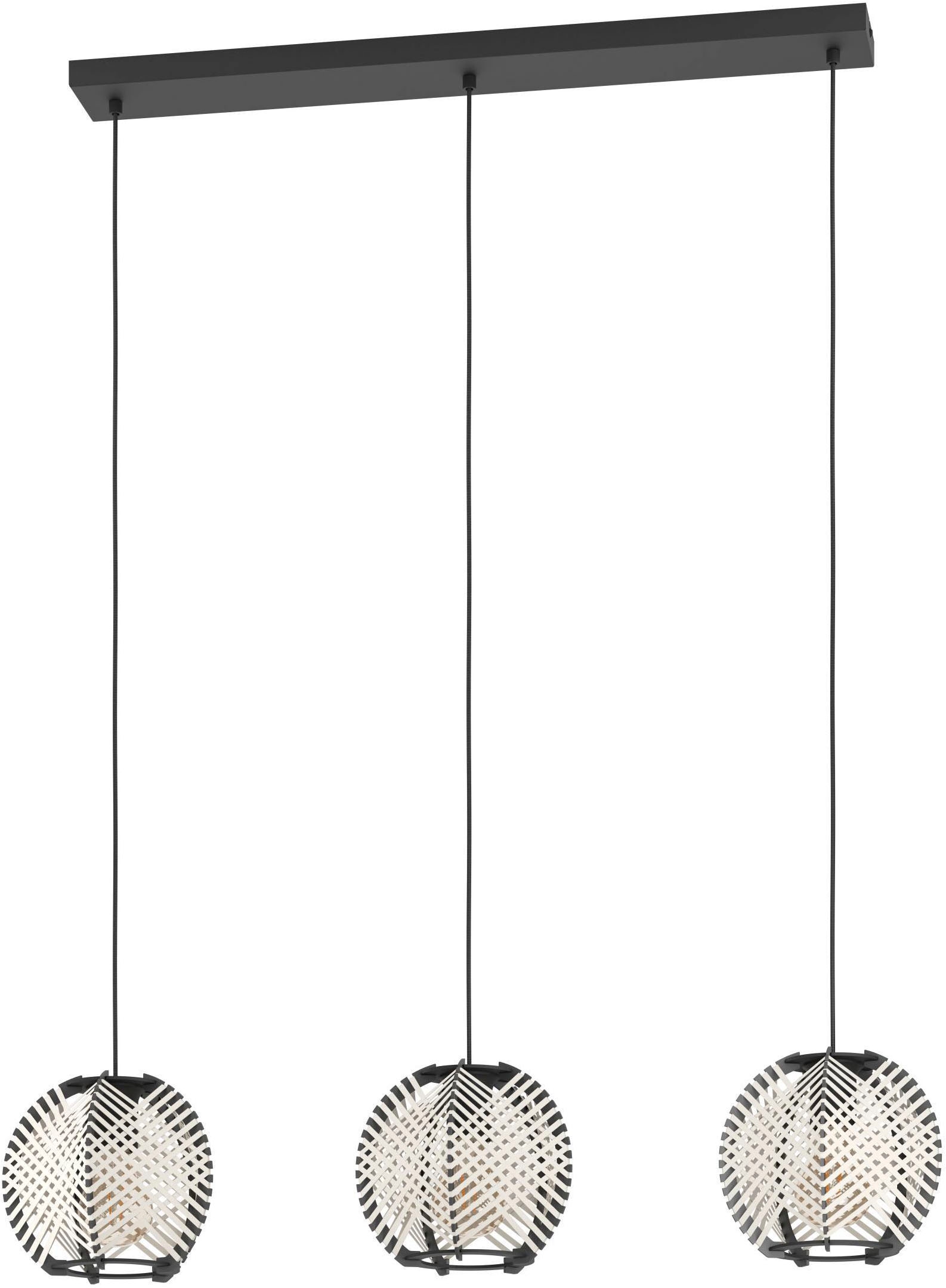 EGLO Hängeleuchte »Waverton Hängelampe, Esszimmerlampe, Metall, Holz, Textil in Weiß, E27« E27 1 Stk. Hängeleuchte - H110 x Ø40 cm - schwarz - 1X40W exkl.