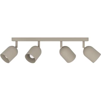 Die Balkenleuchte TILSTON besteht aus einem länglichen Baldachin, an dem zwei zylindrische Spots befestigt sind. Das sandfarbene Finish verleiht der Leuchte eine warme, natürliche Ausstrahlung. Jeder Spot ist individuell schwenkbar und sorgt so für eine flexible Ausleuchtung – ideal für Flur, Schlafzimmer oder Küche. Das puristische Design mit klaren Linien harmoniert mit modernen und minimalistischen Einrichtungsstilen. Die Leuchte ist mit zwei E14-Fassungen ausgestattet, die mit Leuchtmitteln nach Wahl bestückt werden können. Diese sind nicht im Lieferumfang enthalten.