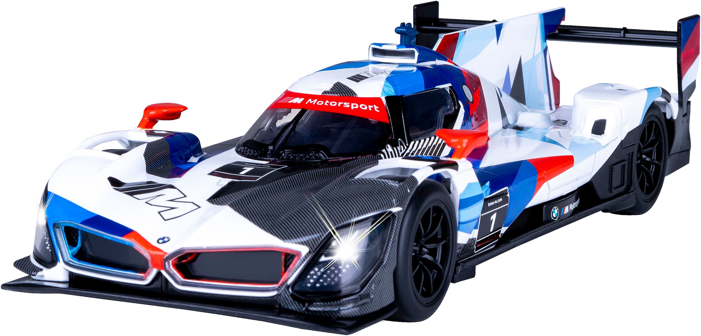 Der BMW M Hybrid V8 ist ein hochmoderner Rennwagen, der von BMW für den Einsatz in der IMSA WeatherTech SportsCar Championship entwickelt wurde. Mit seinem Hybridantrieb, der einen leistungsstarken V8-Motor mit Elektromotoren kombiniert, setzt der M Hybrid V8 neue Maßstäbe in der Langstrecken-Renntechnik und vereint Geschwindigkeit mit Effizienz. JAMARA bringt dieses einzigartige Fahrzeug im hochwertigen Metall DIECAST 1:24 Maßstab in Ihre Sammlervitrine - mit vielen kleinen Details, die jeden Fan begeistern werden. Das offiziell lizenzierte Modell beeindruckt mit seinem detailgetreuen Design und authentischen Merkmalen. Ausgestattet mit profilierten Gummireifen, transparenter Windschutzscheibe sowie LED-Licht vorne und hinten, bietet dieses Sammlerstück alles, was das Herz von Motorsportbegeisterten höherschlagen lässt. Ein realistischer Motorsound sowie ein authentisches Beschleunigungsgeräusch erklingen beim Drücken der Karosserie und sorgen für ein echtes Rennfeeling im Miniaturformat. Der BMW M Hybrid V8 von JAMARA ist nicht nur ein technisches Highlight für Ihre Vitrine, sondern auch ein Muss für jeden Sammler und Liebhaber innovativer Langstreckenrennwagen.