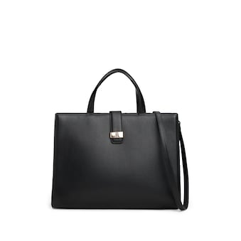 Diese Satchel von Tommy Hilfiger zieht durch das Schmuckelement die Blicke auf sich. Der Riemen ist abnehmbar, sodass sie über der Schulter oder in der Hand getragen werden kann. Die Tasche lässt sich auch am Henkel tragen. Durch den praktischen Magnetverschluss funktioniert das Verschließen und Öffnen schnell und einfach. Mittels einem verschließbaren Fach wird Ordnung und Struktur im Innenraum geschaffen. Das Lederimitat sorgt für einen schicken Look.