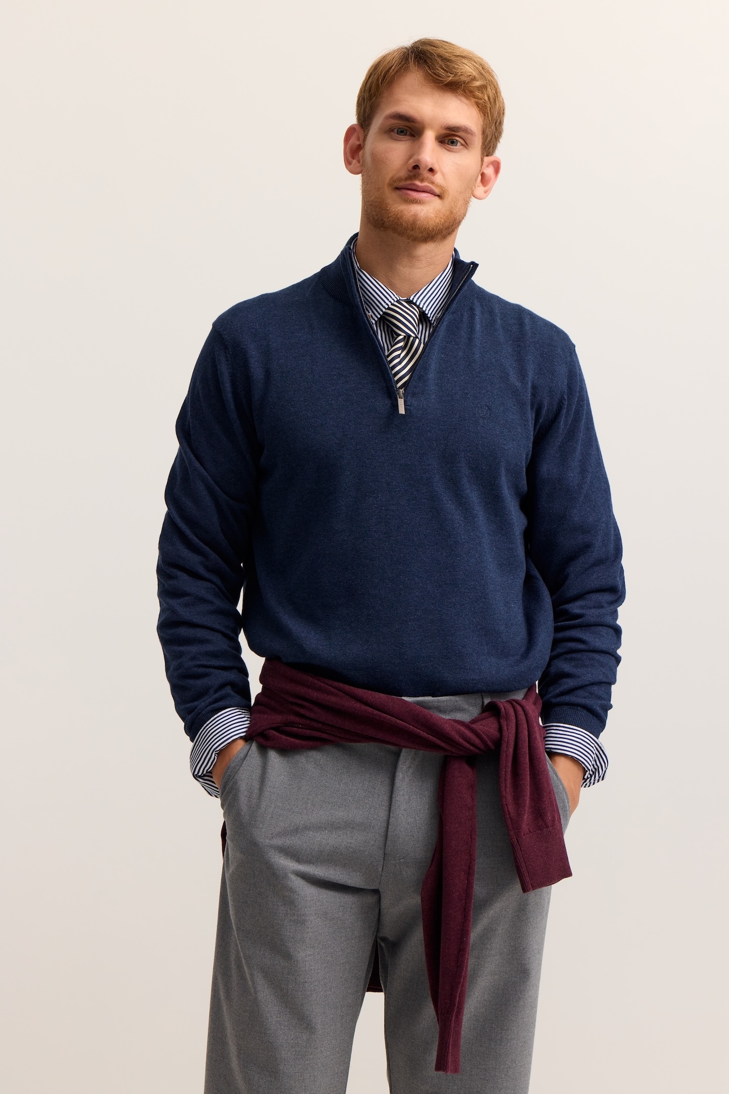 Dieser bugatti Troyer ist ein vielseitiges Basic, das in keiner Herrengarderobe fehlen darf. Mit seinem Regular Fit sitzt er angenehm bequem und bietet dir den ganzen Tag über hohen Tragekomfort. Der Stehkragen verleiht dem Pullover eine sportive und zugleich gepflegte Ausstrahlung und schützt dich an kühleren Tagen vor Wind. Der kurze Reißverschluss sorgt dafür, dass du den Kragen flexibel tragen kannst – offen für einen legeren Look oder geschlossen für mehr Wärme. Hergestellt aus reiner Baumwolle fühlt sich der Troyer weich auf der Haut an, ist atmungsaktiv und pflegeleicht. Ob du ihn zur Jeans in der Freizeit, zur Chino im Büro oder als leichten Überzieher beim Spaziergang trägst – dieser Pullover lässt sich vielseitig kombinieren und passt sich deinem Stil mühelos an. Wenn du Wert auf Qualität, zeitloses Design und hohen Komfort legst, ist dieser bugatti Troyer genau die richtige Wahl für dich.