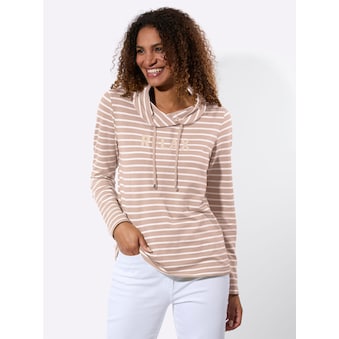 Reinschlüpfen, wohlfühlen: hübsches Shirt in leicht taillierter Form mit zauberhafter Spitze am Rundhals-Ausschnitt mit offenem V und an den langen Ärmeln mit paspeliertem Abschluss. In trageangenehmer Baumwoll-Qualität. OCS-zertifiziert. 100% Baumwolle. Maschinenwäsche.