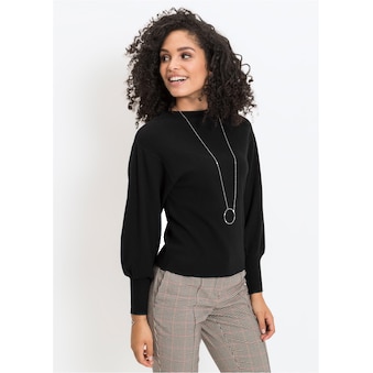 bonprix Strickpullover aus Polyester, mit Stehkragen, Oversize-Passform, feiner Rippstrick