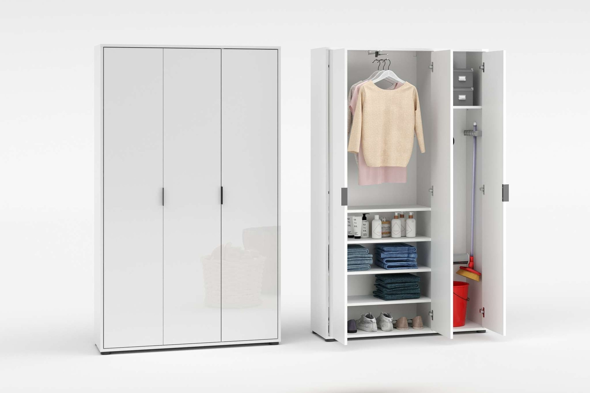 - Praktischer Universalschrank – ideal als Garderobe, Hauswirtschafts- oder Vorratsschrank. Mit 107 cm Breite perfekt für flexible Raumlösungen