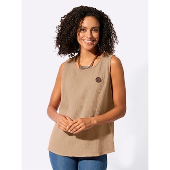 Blusentop Musselin, etwas länger, hinten mit Mittelnaht, Mit Seitenschlitzen. Rundhals. Brustabnäher. Unterstützt die Initiative Cotton made in Africa.Cotton made in Africa. 100% Baumwolle. Maschinenwäsche.