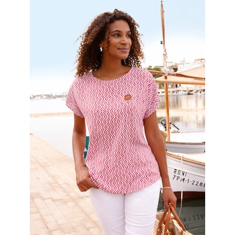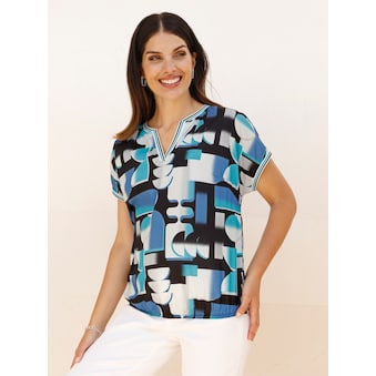 Die Langarm-Bluse kombiniert das blickfangstarke grafische Dessin mit der lässig-modischen Schlupfform. Rundhals-Ausschnitt mit kleinem V. Knopfmanschette am Abschluss der langen Ärmel. In überzeugend pflegeleichter Qualität. 100% Polyester. Maschinenwäsche.