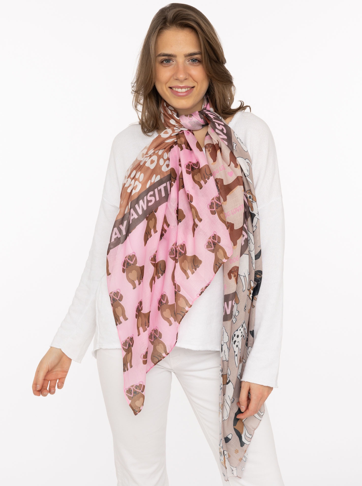 Frauen-Schal von Zwillingsherz mit trendigem Design. Das Material ist leicht und trocknet schnell. Eine trendige und farblich passende Mütze lässt sich zu den Modetüchern besonders gut kombinieren.