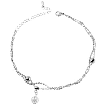 Fußschmuck mit Stil für einen traumhaften Sommer.Dieses elegante Fußkettchen aus hochwertigem Edelstahl in kühlem Silberton mit einer Länge von 24 cm und einer Breite von 6 mm bei einer Stärke von 2 mm zeichnet sich durch sein zweireihiges Design im Ankerkettenmuster aus: zwei zarte Ketten aus Edelstahl, die das Fußgelenk stilvoll umschmeicheln. Entlang der oberen Kette sind in gleichmäßigen Abständen 2 mm starke, polierte Kugeln integriert, die dem Schmuckstück einen subtil verspielten verleihen. Den zentrale Blickfang bildet ein zart schimmernder, hängender Anhänger mit einem runden Glasstein und einem Durchmesser von 6 mm, der das Licht kunstvoll einfängt. Flankiert wird der bewegliche Anhänger jeweils links und rechts von 2 Infinity-Anhängern (12 x 4,5 mm), die das Design der Fußkette harmonisch komplettieren. Für optimalen Tragekomfort und eine individuelle Anpassung sorgt de