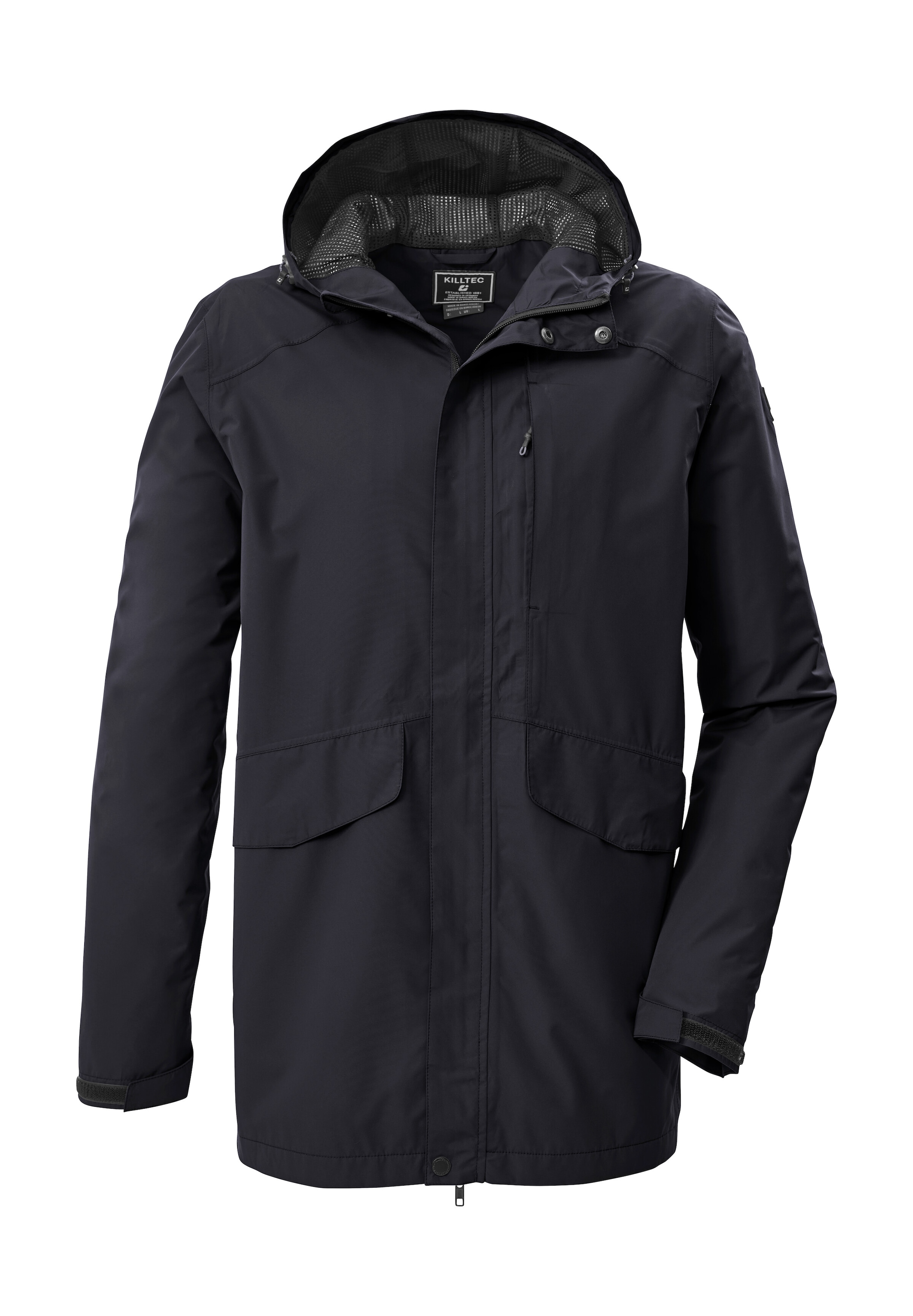 Die superleichte Herren Funktionsjacke von killtec hat verschweißte Nähte und ist wind- und wasserdicht mit einer 10.000 mm Wassersäule (Unser Tipp: ab und zu sollte die Jacke neu imprägniert werden). Gleichzeitig ist sie atmungsaktiv mit einer Wasserdampfdurchlässigkeit von 3.000 g/m²/24h. Zudem lässt sich die Jacke komplett in der eigenen Tasche verstauen und somit platzsparend transportieren. Kapuze, Saum und Ärmelbündchen sind regulierbar. Die beiden Seitentaschen und die Brusttasche sind mit Zippern verschließbar, eine Innentasche bietet weiteren Stauraum. Der Frontreißverschluss ist mit einem praktischen Kinnschutz versehen. Die Jacke ist mit der leistungsstarken, regenerativen Ausrüstung Teflon EcoElite™ imprägniert. Dieses Textilrepellent ist pflanzenbasiert und hat eine nicht fluorierte Fleckschutztechnologie, die Wasser- und wasserbasierte Flecken abweist.