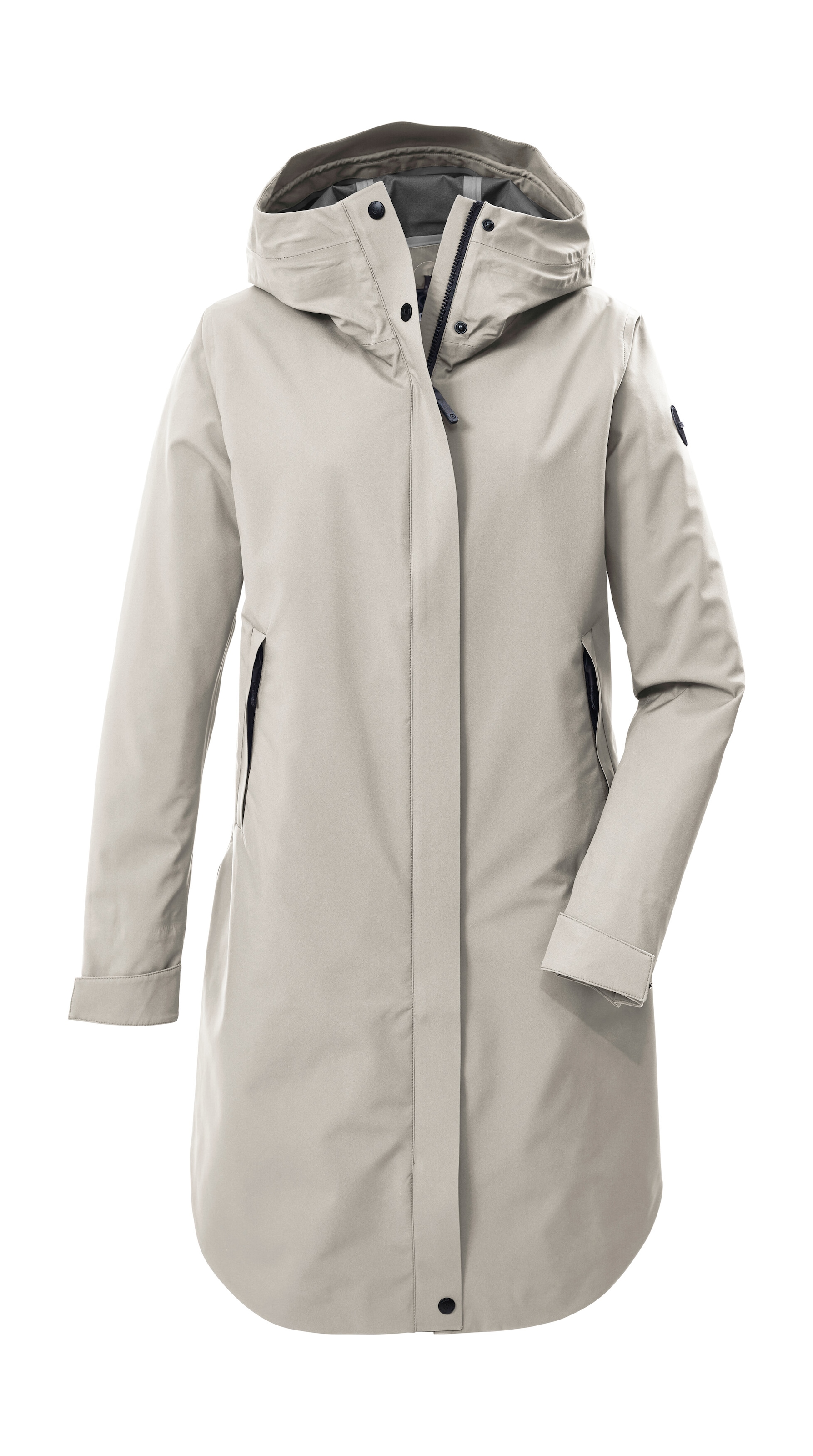 Die Damen Funktionsjacke von G.I.G.A. DX ist citytauglich, aber auch für den Spaziergang in der Natur geeignet. Sie hat verschweißte Nähte und wasserdichte Reißverschlüsse. Die Jacke ist somit wind- und wasserdicht mit einer 10.000 mm Wassersäule (Unser Tipp: ab und zu sollte der Mantel neu imprägniert werden). Dabei ist er besonders atmungsaktiv mit einer Wasserdampfdurchlässigkeit von 5.000 g/m²/24 h. Ventilationsöffnungen am Rücken sorgen zusätzlich für ein angenehmes Körperklima. Die Kapuze ist verstellbar und lässt sich bei Bedarf abnehmen. Die beiden Eingrifftaschen lassen sich mit Zippern verschließen. Die Innentasche bietet zusätzlichen Stauraum. Die Ärmelabschlüsse lassen sich anhand von Druckknöpfen verstellen, die Weite des Saums ist durch einen Kordelzug regulierbar. Der Kinnschutz am halb verdeckten Frontreißverschluss verhindert ein Einklemmen der Haut. Die Jacke ist mit der leistungsstarken, regenerativen Ausrüstung Teflon EcoElite™ imprägniert. Dieses Textilrepellent ist pflanzenbasiert und hat eine nicht fluorierte Fleckschutztechnologie, die Wasser- und wasserbasierte Flecken abweist.