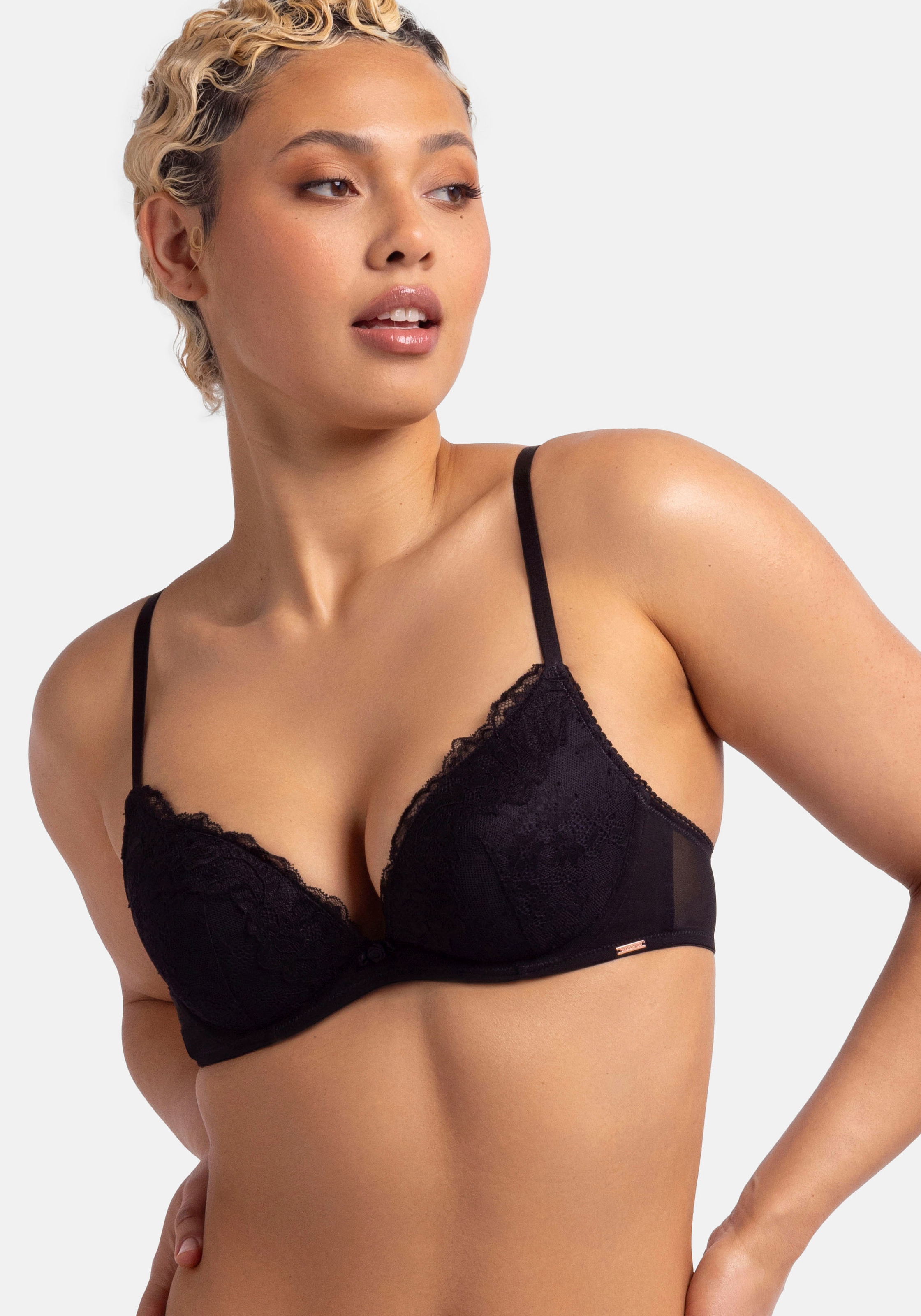 Werten Sie Ihre Dessous-Kollektion mit dem Push-up-Plunge-BH ORIGINS auf. Dieser BH verfügt über ein geformtes Bügel-Cup für mehr Halt und Form. Verstellbare Schultergurte sorgen für eine individuelle Passform, während zarte Spitzendetails einen femininen Touch verleihen.
