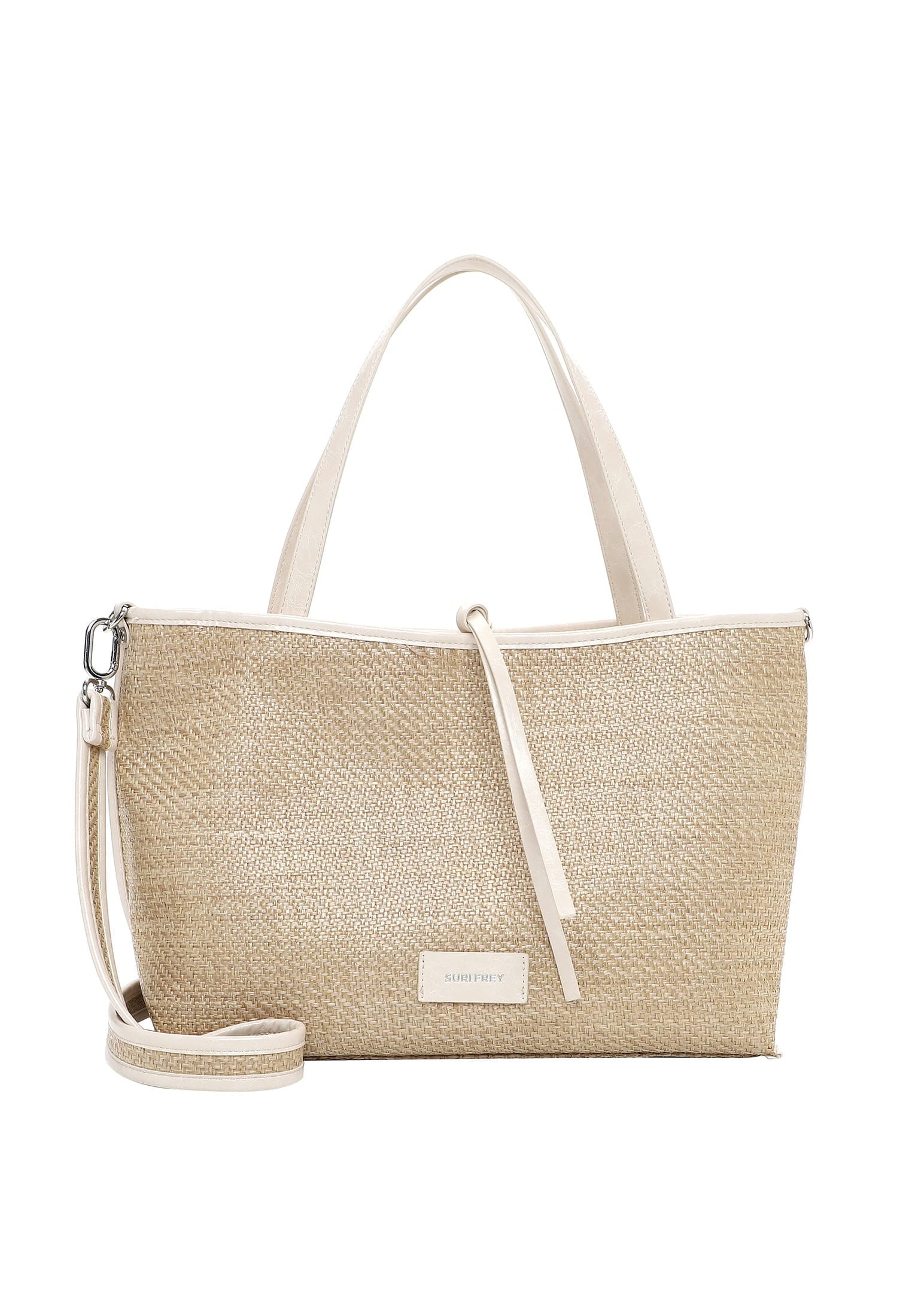 SURI FREY - die Marke für "freye" Frauen Authentisch, selbstbewusst und schön - so präsentieren sich Frauen in ihrem aufregenden Alltag. Selbstverständlich am liebsten mit ihrer Lieblingstasche. Mit SFY Fany - dem schicken Shopper in Bast-Optik mit längenverstellbarem, abnehmbarem Umhängeriemen - ist die liebste neue Begleitung im Alltag jederzeit dabei. Ob für Büro, Schule oder in der freien Zeit - mit ihm lässt sich einfach jedes Abenteuer bestreiten. Dieser Shopper hat es in sich - wortwörtlich! Denn er ist wegen seiner besonderen Machart unkompliziert wendbar. Das Modell besteht aus Feinsynthetik und lässt sich mit einer Schnürung verschließen. Ein optisches Highlight ist der Shopper mit Bast-Optik und dem zweifarbigen Design. Die tollen Accessoires von SURI FREY stehen für Freiheit, Lebenslust und Offenheit - genau das, was Frauen mit Selbstbewusstsein ausmacht. Der Shopper hat ein übersichtliches Hauptfach. Das Rückfach mit Reißverschluss ist ideal, um zusätzlichen Stauraum zu schaffen und Dinge schnell griffbereit zu haben. Für alle, die eine weiche Haptik lieben - SFY Fany ist angenehm anschmiegsam. Für das gewisse Extra sorgt die Applikation mit dem Logo-Patch, die direkt ins Auge fällt. Über der Schulter ist dieses Modell mit dem komfortablen, längenverstellbaren und abnehmbaren Umhängeriemen und den zwei Tragegriffen zu tragen. Mit dem mittelgroßen Shopper lassen sich Haustürschlüssel, Portemonnaie, Handy und Co. problemlos transportieren.