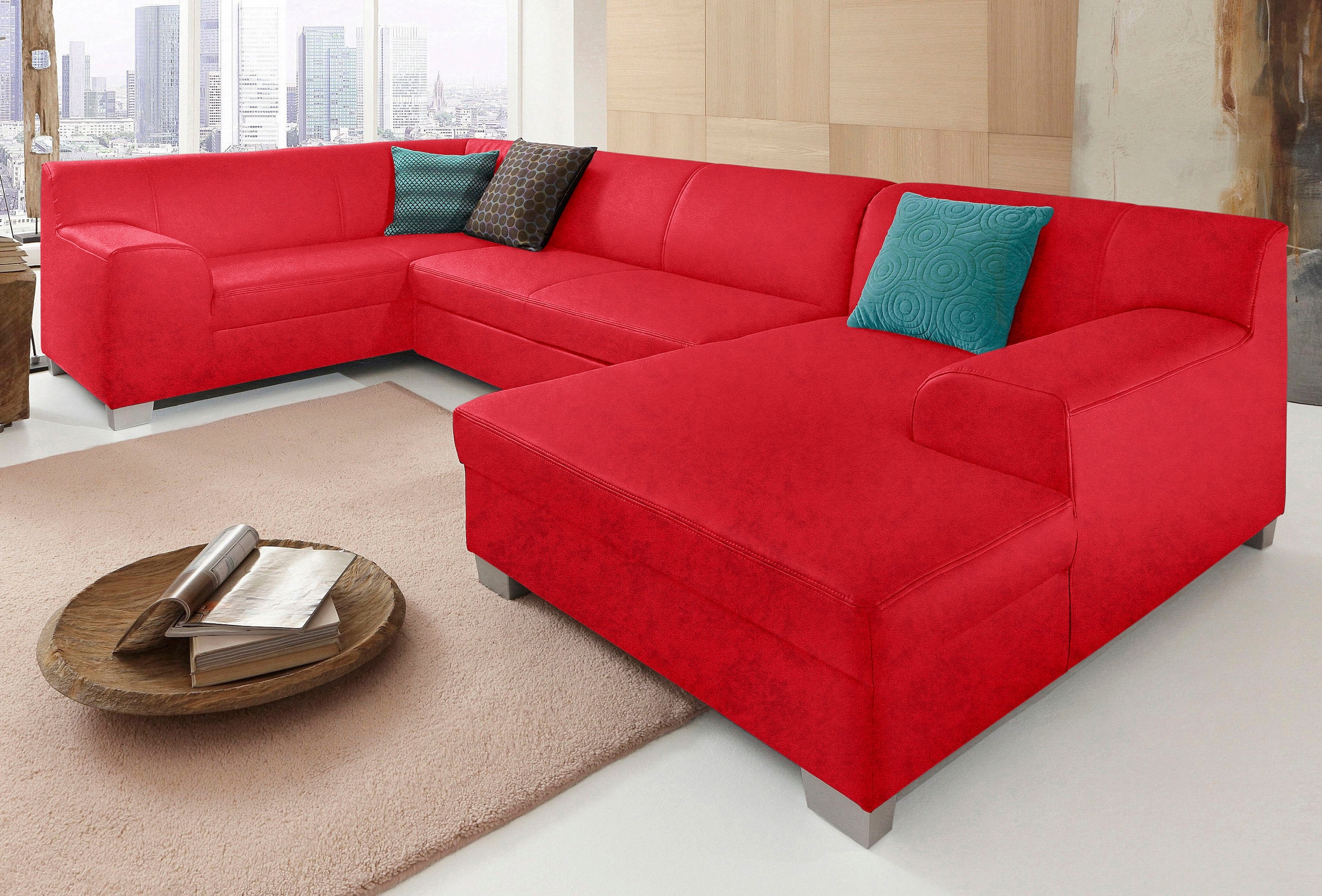 DOMO collection Wohnlandschaft »Amando in vielen Bezugsvarianten, auch in Leder, komfortabel, U-Form« wahlweise mit Bettfunktion, fester Sitzkomfort, frei im Raum stellbar
