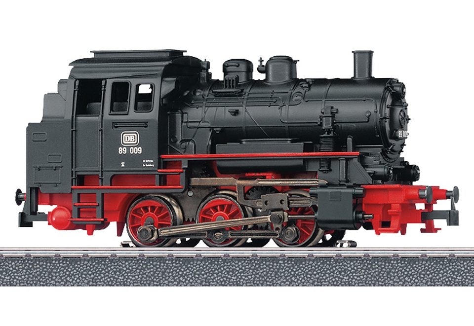 Märklin Tenderlokomotive, »Baureihe 89.0 - 30000«, Märklin Start up. Tenderlokomotive der Baureihe 89.0 der Deutschen Bundesbahn (DB). Einheitslokomotive. Details: Tenderlokomotive Baureihe 89.0. Mit Digital-Decoder. 3 Achsen angetrieben. Haftreifen. Dreilicht-Spitzensignal konventionell in Betrieb, digital schaltbar. Austauschbare Kupplunghaken. Epoche III. Spurweite H0. Länge über Puffer: ca. 11 cm. Altersempfehlung ab 6 Jahren. Warnhinweise: Achtung: Nicht geeignet für Kinder unter 3 Jahren wegen funktionsbedingter scharfer Kanten oder abbrech- und verschluckbarer Kleinteile.