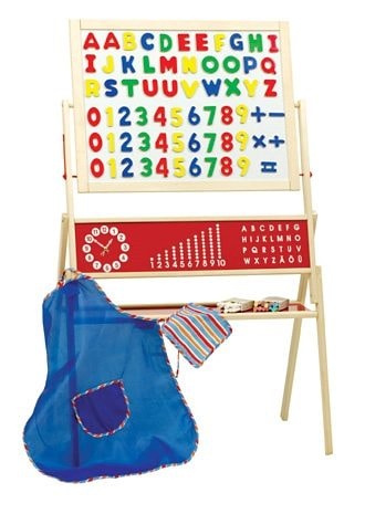 Mit der schönen Standtafel aus Naturholz macht das Schule spielen Spaß! Uhr, Zählrahmen, ABC und die beidseitig magnetischen Tafelblätter unterstützen die Kinder beim Schreiben, Zählen, Spielen und Lernen. Der große Kasten bringt Ordnung für Kreide, Magnetbuchstaben und Wischlappen. Mit roba können Kinder spielend die Welt der Schule entdecken!