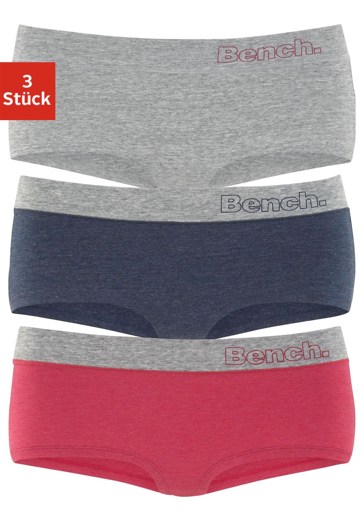 Coole, hüftig geschnittene Pantys von Bench im 3er-Pack. Besonders breites Bündchen mit Logodruck seitlich. Aus hochwertiger, elastischer Baumwolle.