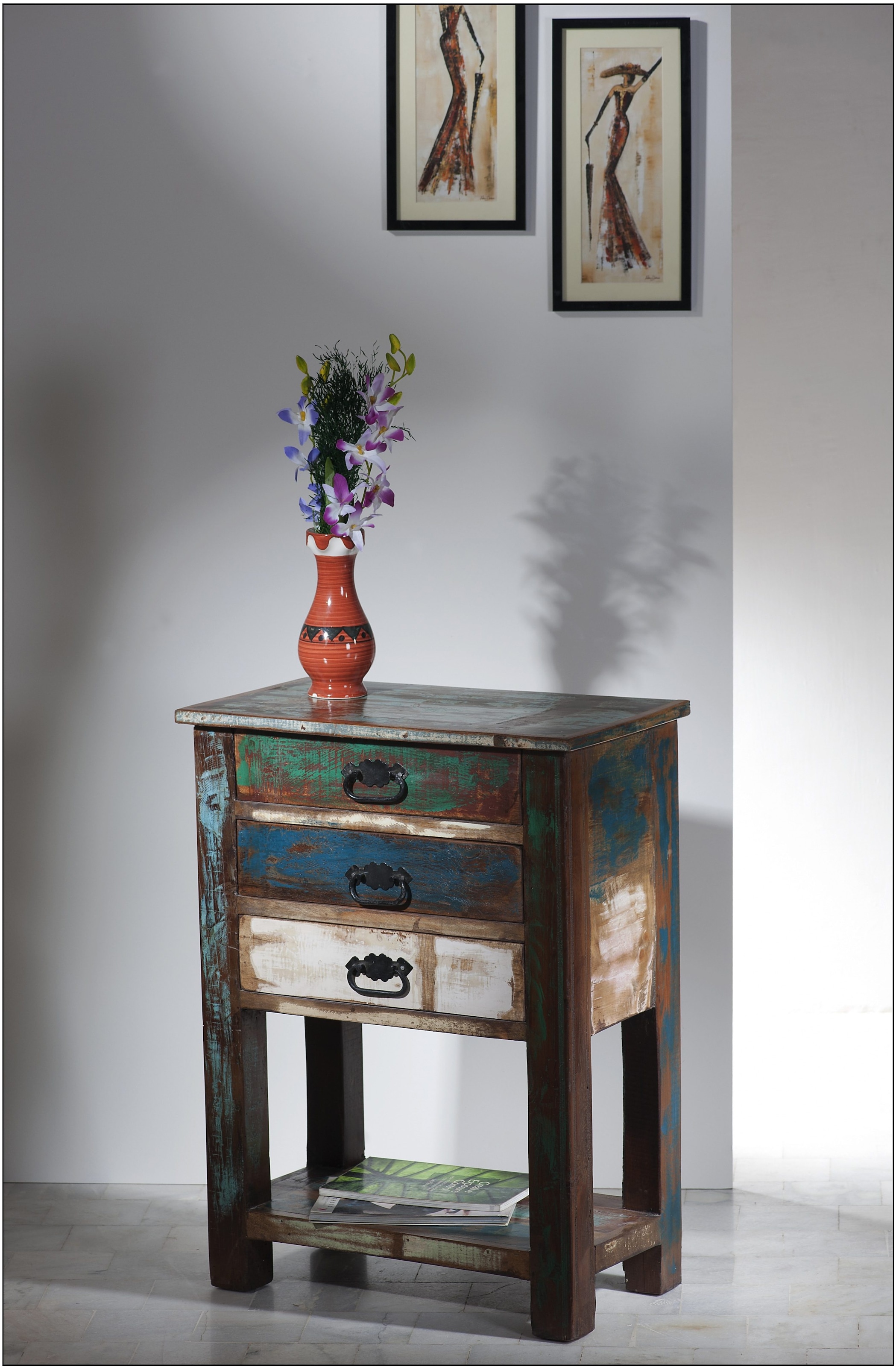 Wissenswertes | Tolle Einzelmöbel aus alten Fischer-Booten von Hand gefertigt. Durch ein geschicktes »Auge« wird das Holz so »gelegt«, dass es ein harmonisches Bild ergibt. So ist jedes Stück ein Unikat. Durch den Verzicht auf moderne Hilfsmittel bekommt jedes Stück ein eigenes »Gesicht«. Richtig integriert ergeben diese Möbel auch in einem modernen Ambiente ein besonderes Bild. Der Telefontisch ist mit 3 Schubläden auf Holzauszügen ausgestattet. Unten befindet sich eine Ablagefläche für Bücher etc. Maße (B/T/H): 60/32/79 cm. In folgenden Farben erhältlich: