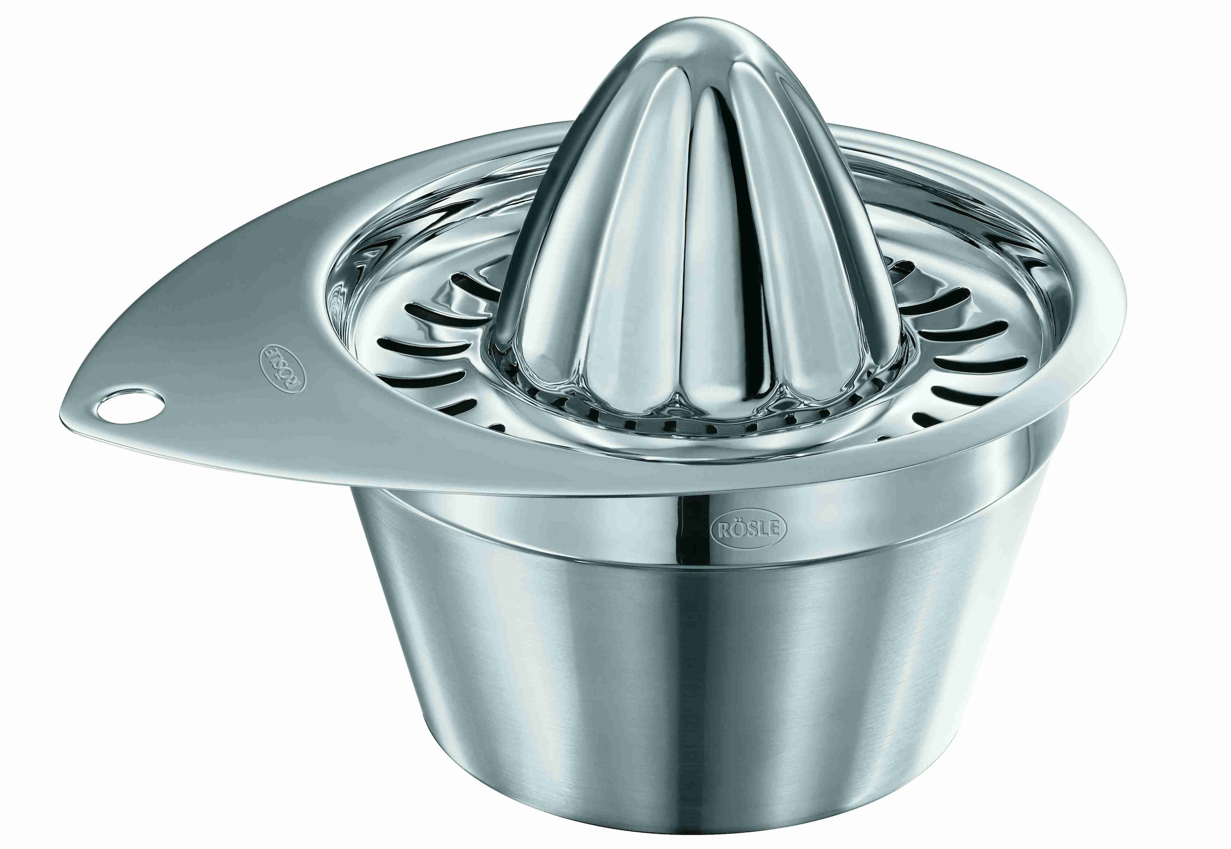 RÖSLE Zitronenpresse: Pressen von Zitronen, Limetten und Orangen - mit der Zitronenpresse von RÖSLE ein Kinderspiel. Sauber und effizient werden Saft und Kerne voneinander getrennt durch perfekt ausgerichtetem Kegel und Ablauflöchern. Nach dem Pressen wird kein Tropfen vom Saft verschwendet, denn der rundum laufende Schüttrand erleichtert das Umfüllen und Dosieren. Zudem hilft die Innenskalierung im Edelstahlbehälter, die richtige Menge als Zutat vorzubereiten. Aus hochwertigem Edelstahl 18/10 hergestellt ist die Zitronenpresse spülmaschinengeeignet und genauso mühelos von Hand abwaschbar. Edel. Robust. Langlebig. RÖSLE.