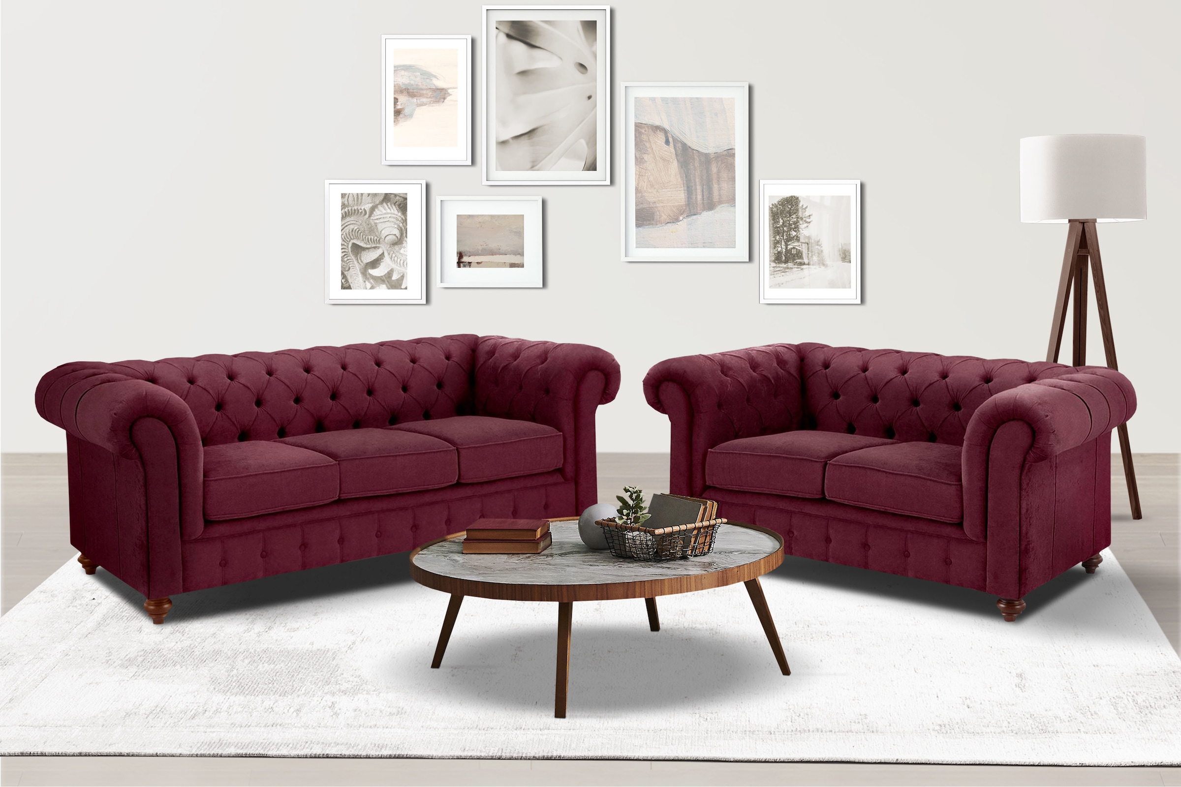 Hochwertige Chesterfield-Polsterserie mit klassischer Knopfheftung. Dick gepolstert, abgerundete Armlehnen - für das moderne Landhaus oder auch in klassischer Einrichtung. In 4 Bezugsqualitäten. Lieferbar als Polsterecke, Sessel, 2- und 3-Sitzer und Hocker. Und als Set: 2- und 3-Sitzer zusammen mit Sparvorteil. Holzfüße.