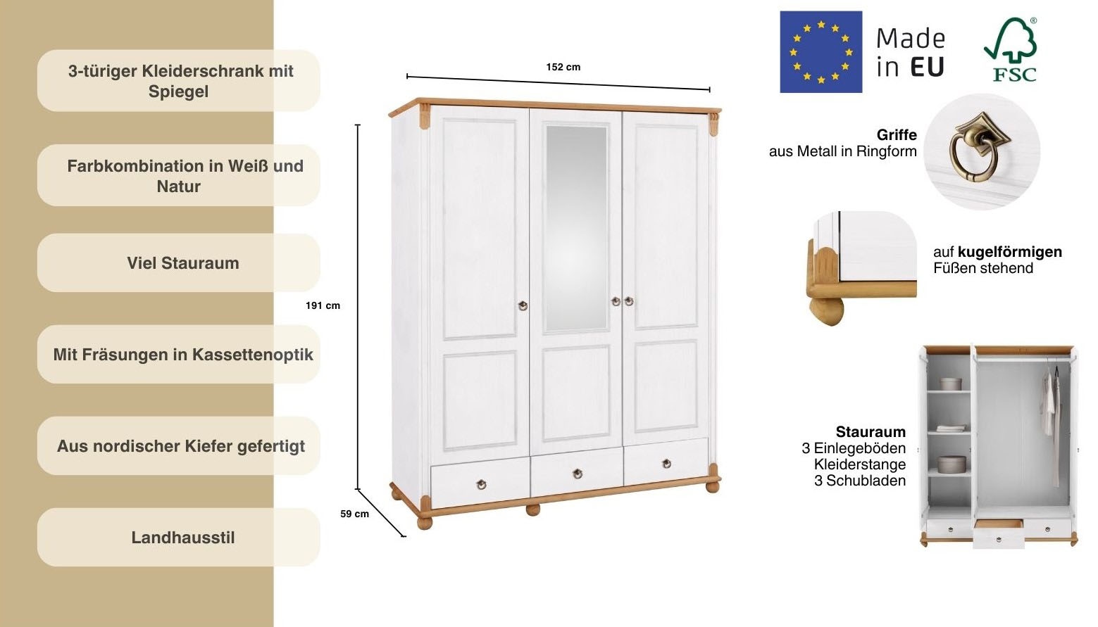 - 3-türig mit 3 geräumigen Schubladen