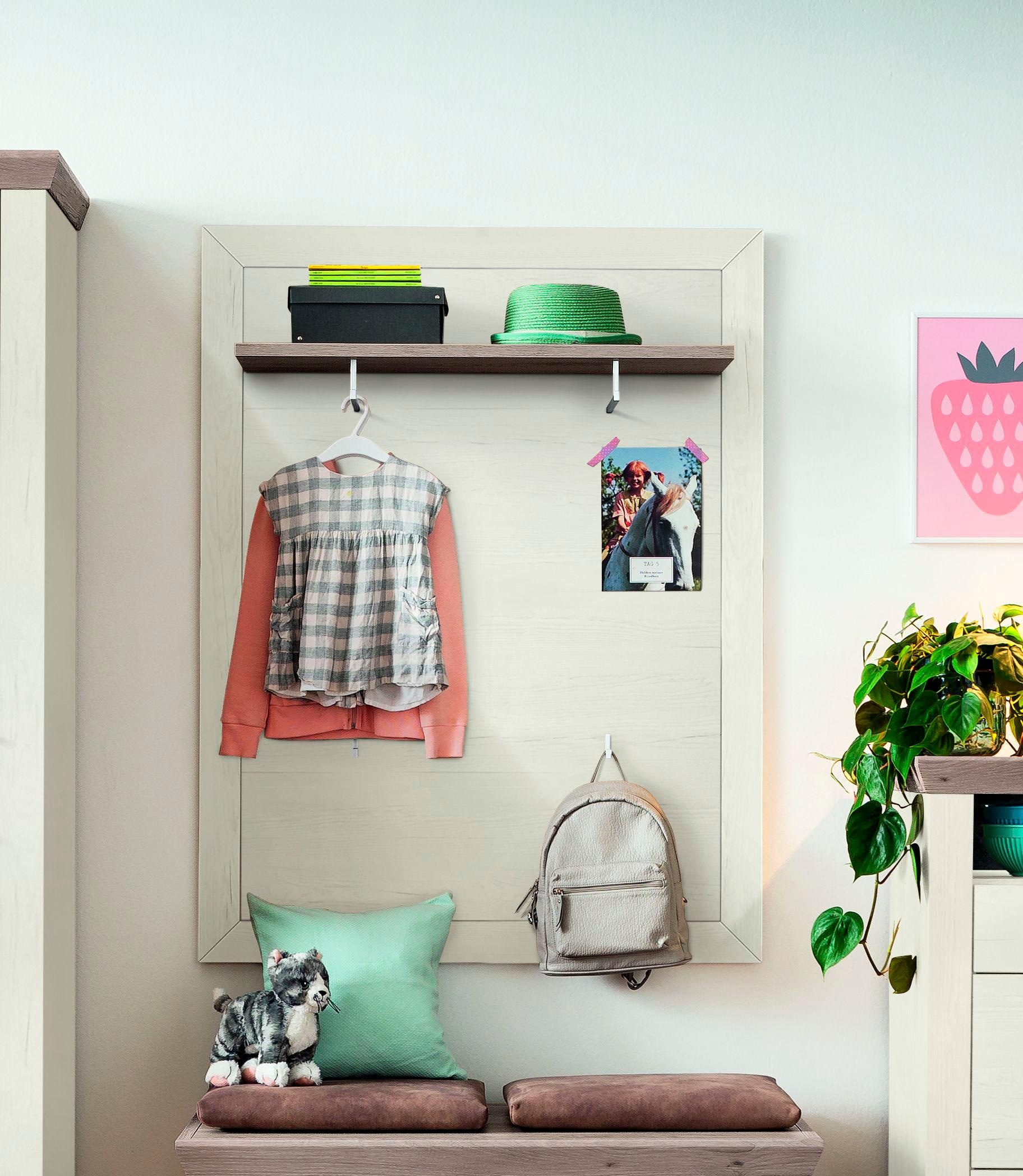 set one ist die Marke für alle Jungen und Junggebliebenen. Der Zusatz »by Musterring« im Logo macht klar: Wie schon bei Musterring wird auch bei set one Qualität groß geschrieben.  Ein bisschen klassisch und gleichzeitig modern präsentiert sich die Serie »york« von set one by Musterring. Freundlich, hell, gemütlich - Lebensfreude pur - das ist der Stil dieser Serie.  Das Paneel ist die optimale Ergänzung zu den verschiedenen Dielen Elementen der Serie »york«. Ein Ablageboden und vier Wandhaken schaffen Platz für Jacken, Taschen und Accessoires. Das Paneel ist mit max. 3 KG belastbar.