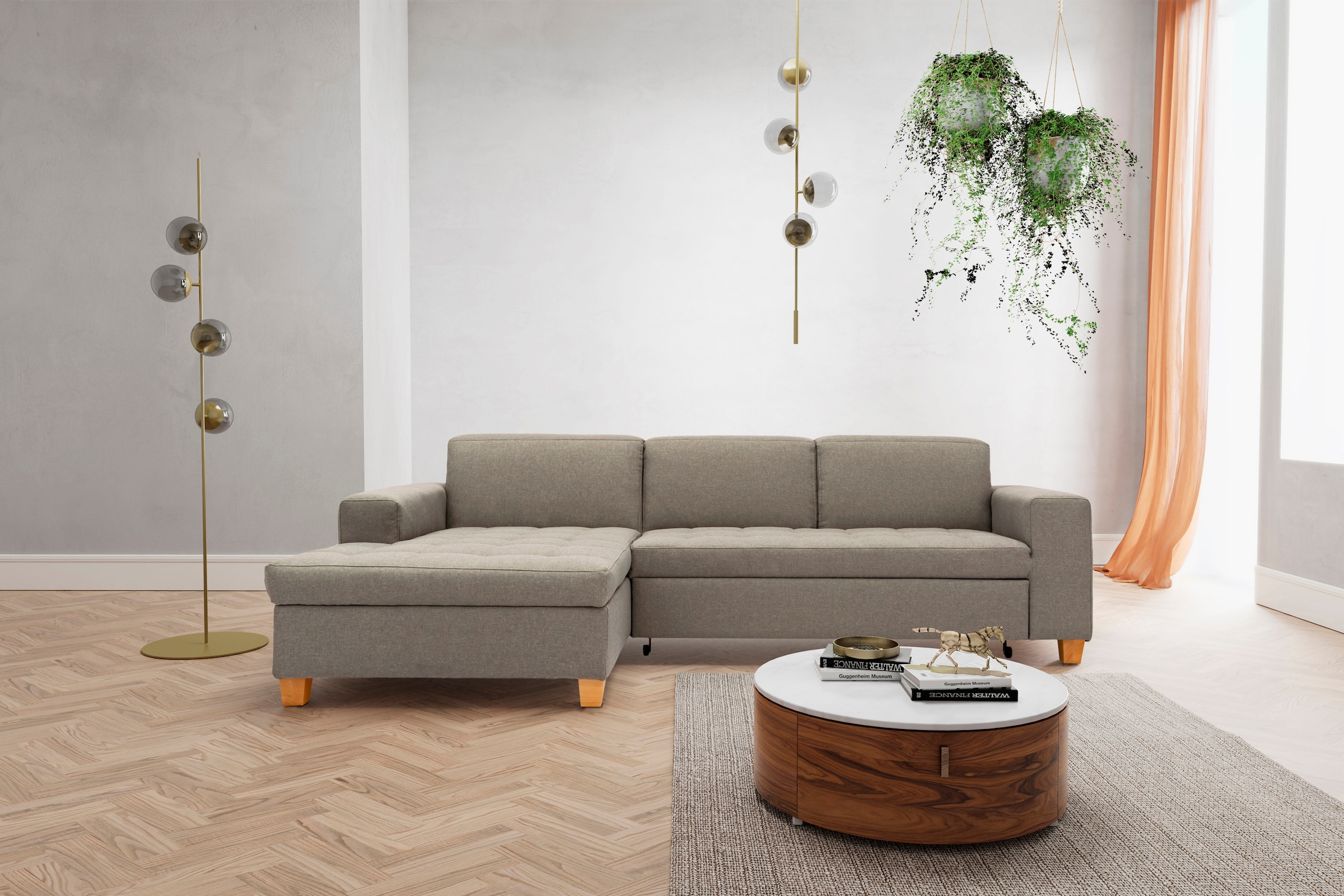 Modernes Polsterprogramm, dass sich sehen lassen kann. Wahlweise mit Bettfunktion und Bettkasten. Stabiles Holzgrundgestell aus FSC zertifiziertem Holzwerkstoff. Frei im Raum stellbar. Wellenfedern und eine formstabile Polyätherschaumauflage sorgen für einen hohen Sitzkomfort. Wählen Sie aus vier verschiedenen Bezugsqualitäten Ihr Lieblingsmodell aus.