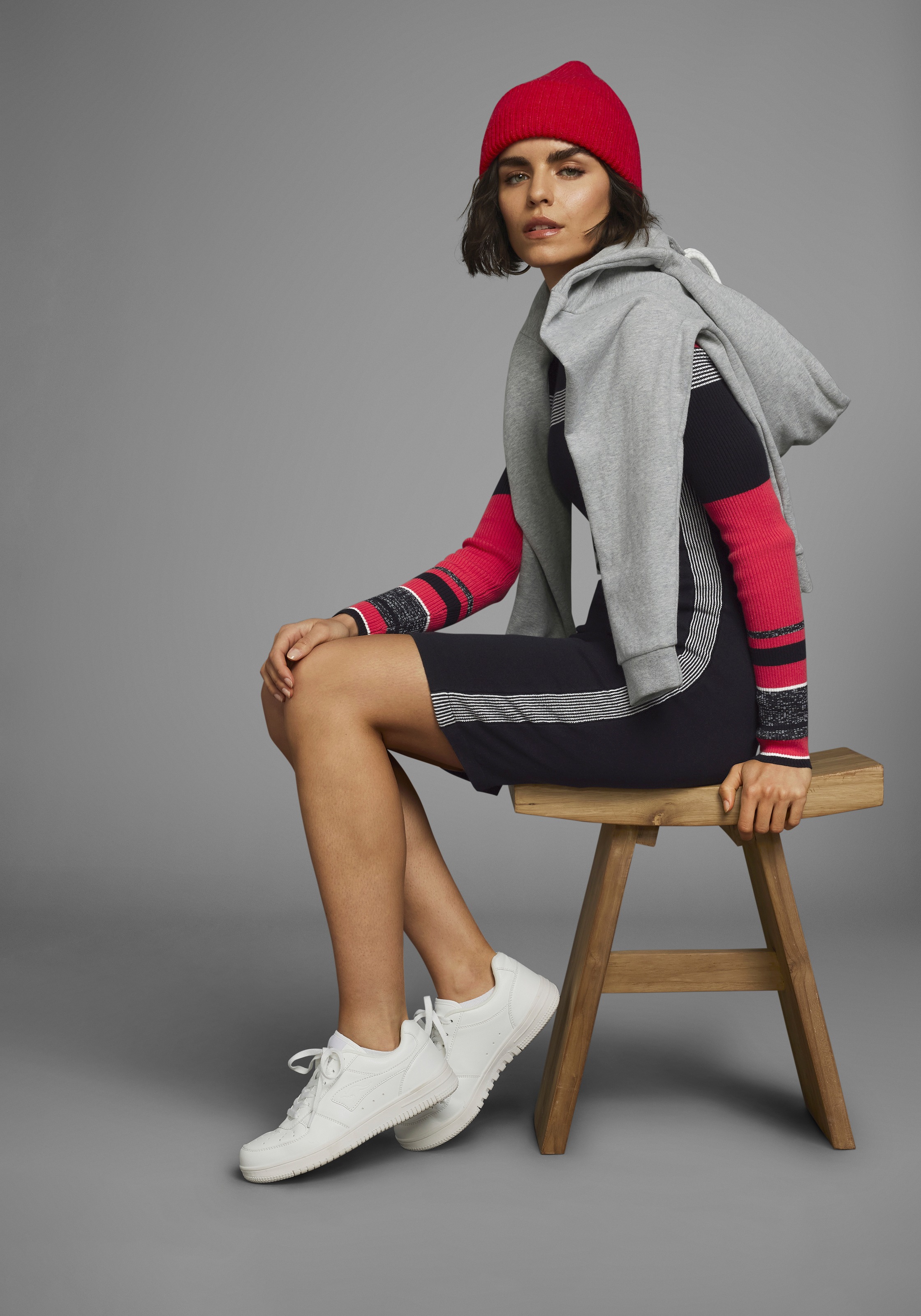 - Sportiver Look durch Rippstrick-Ärmel und kontrastfarbene Streifendetails