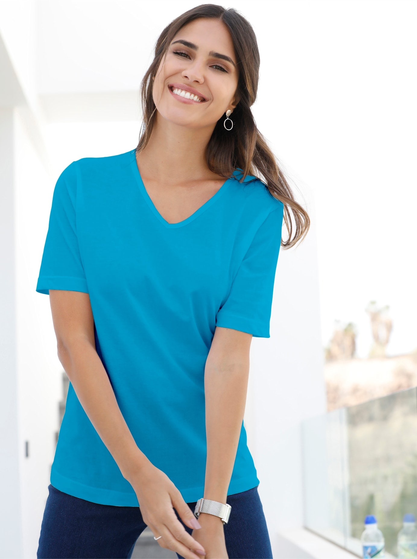Softweiches Basic! Shirt mit Knöpfchenverzierung am herzförmigen Ausschnitt. 50% Baumwolle, 50% Modal. Maschinenwäsche.