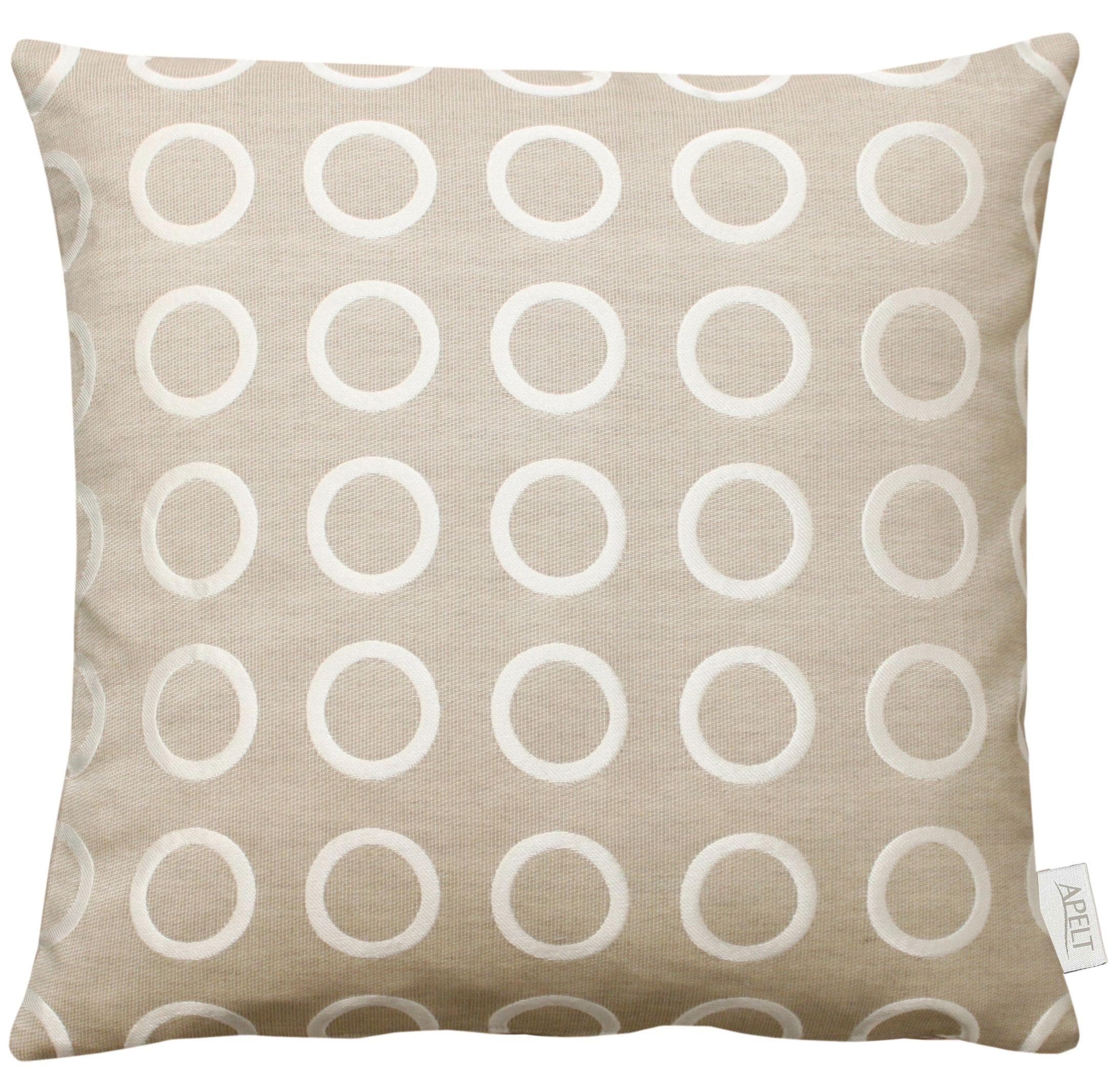 Hochwertiger Jacquardstoff aus dem Hause Apelt- Ein besonderes Jacquardgewebe mit interessantem Wechsel von Glanzgarn und mattem Garn, in angesagter all-over Grafikmusterung aus dekorativen Kreisen. In vielen schönen Wohnfarben, geschaffen für zeitgemäßes Einrichten mit Textil. Die eleganten Kissenhüllen in verschiedenen Größen haben einen praktischen Reißverschluss. Das hochwertige Material besteht aus 80% Polyester und 20% Viskose. Waschbar mit 30°C im Schonwaschgang, feucht aufhängen, auf 2 Punkt bügeln.Schadstoffgeprüft nach STANDARD 100 by OEKO-TEX® und made in Germany.