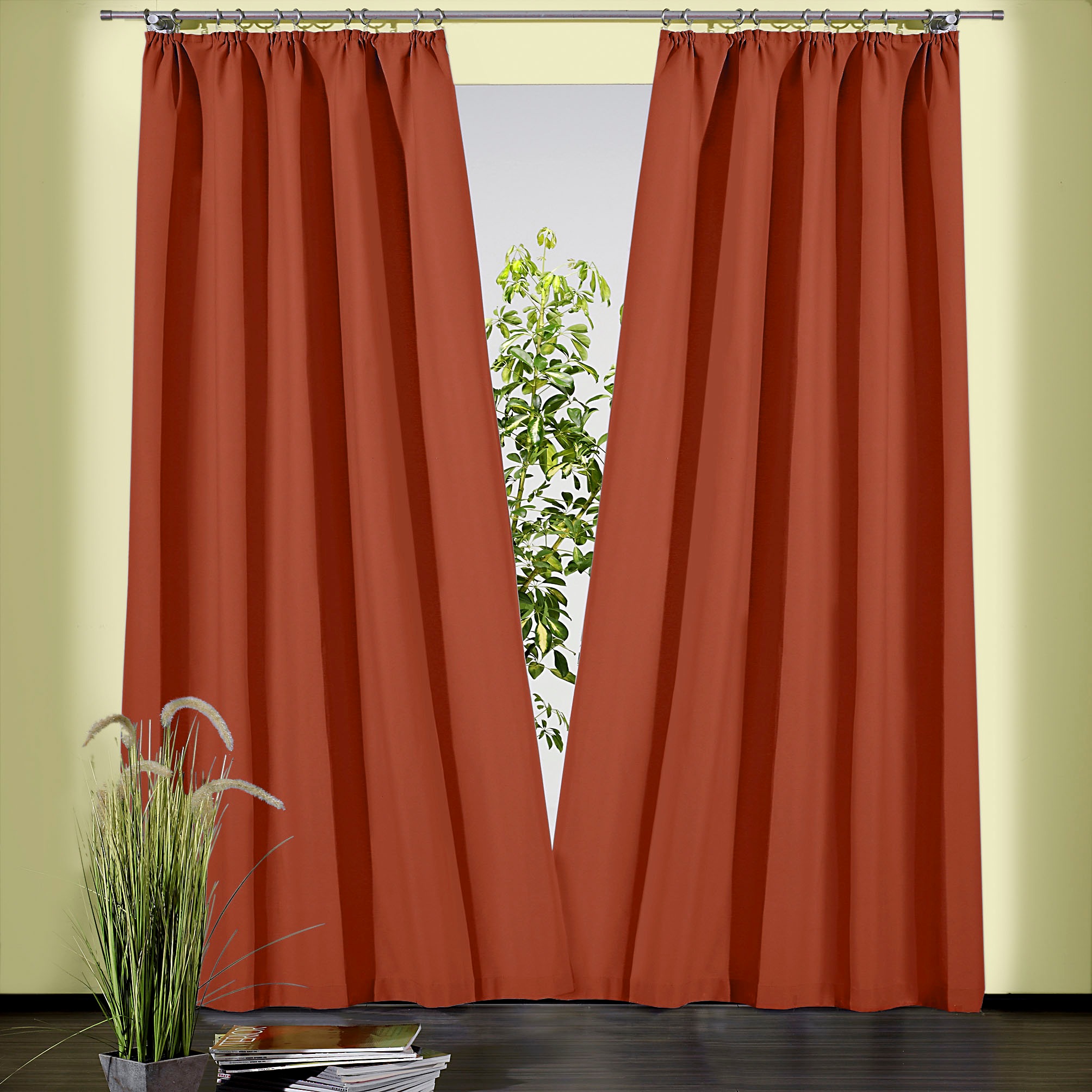 Hinweis Dekoration | Die angegebenen Maße sind Stoffmaße.;Am Fenster fertig dekoriert, reduziert sich die Breite um ca. die Hälfte. |
