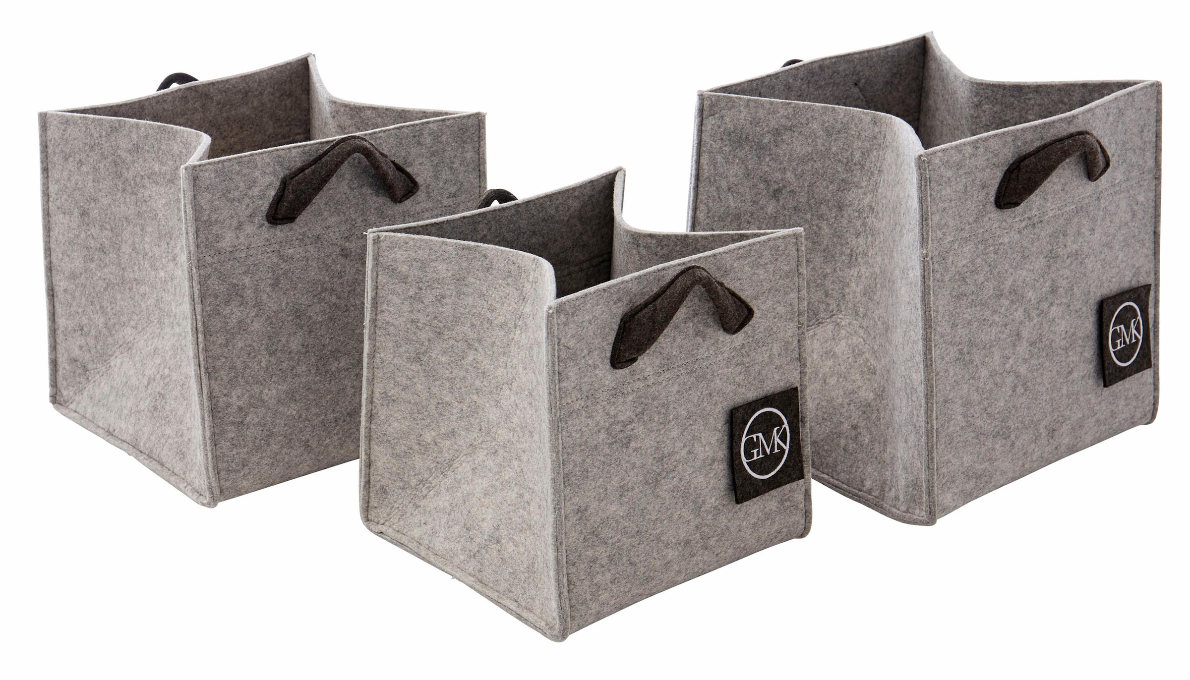Wissenswertes | Details: Praktische Körbe mit Tragegriffen, für alle Wohnbereiche geeignet, Maße: (B/T/H): 28/28/28 cm, (B/T/H): 31/31/31 cm, (B/T/H): 33,5/33,5/33,5 cm, Material/Qualität: Filz |