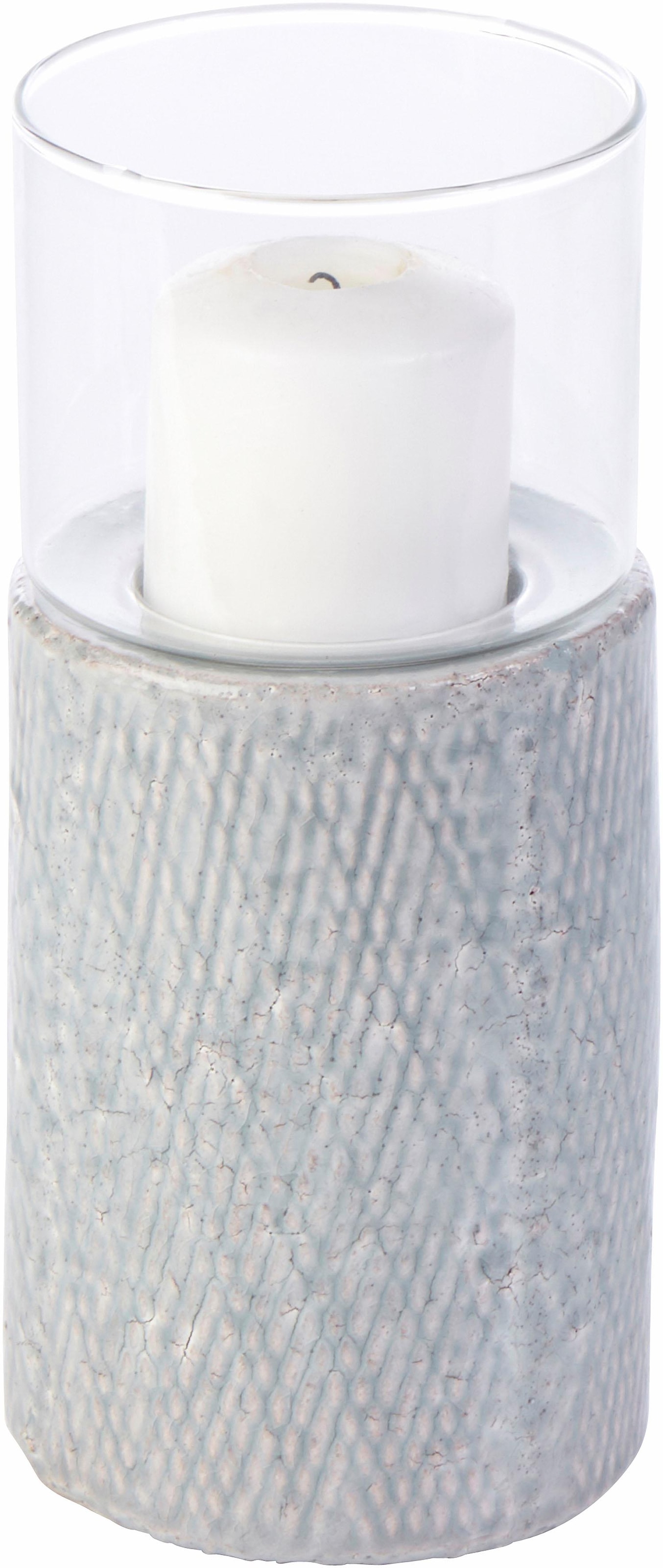 Als dekorative Gestaltungsidee mit vielseitigen Aufstellmöglichkeiten entpuppt sich dieses attraktive Windlicht von Home affaire. Das zylinderförmige Glas sitzt auf einem Sockel aus robustem Steingut mit gut sichtbarer Struktur. Es entfaltet eine charmante Wirkung auf dem Wohnzimmertisch, auf der Fensterbank und an vielen weiteren Stellen. Dank der schweren Bauweise eignet sich das Standwindlicht prima auch für den Außenbereich. Ob einzeln oder im Ensemble aufgestellt, es entsteht eine romantische Stimmung auf dem Balkon, auf der Terrasse und im Garten. Ein toller Anblick an lauen Sommerabenden, wenn die Sonne hinter dem Horizont verschwindet. Das dekorative Windlicht von Home affaire eröffnet zahlreiche Gestaltungsmöglichkeiten für den Innen- und Außenbereich.