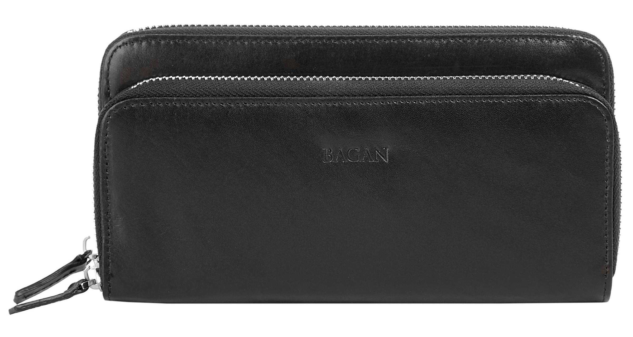 Die Damen Leder Geldbörse von Bagan im komfortablen Querformat beinhaltet nahtlos unendlich Stauraum für Kleingeld, Karten und Ausweispapiere. Das glatte, weiche Leder sorgt mit den silbernen, umlaufenden Reißverschlüssen für das gewisse Etwas.