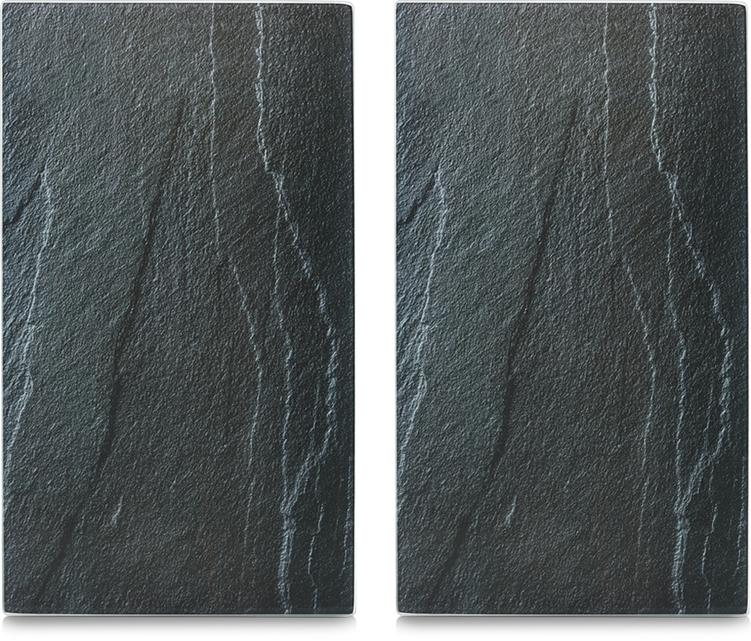 Diese modernen Platten sind aus ESG-Sicherheitsglas hergestellt und können sowohl als Herdabdeckung als auch zum Schneiden verwendet werden. Sie überzeugen nicht nur durch ihre Funktionalität, sondern auch durch ihre Optik. Die Herdabdeck-/Schneideplatten stellen Ihnen zusätzlichen Arbeitsplatz zur Verfügung und schützen zugleich Ihr Kochfeld. Die Silikonfüße geben den Platten extra Halt und einen rutschfesten Stand beim Zubereiten und Schneiden. Sie sind nahezu unzerbrechlich und hitzebeständig, trotzdem empfehlen wir Ihnen, diese nur auf abgekühlten Kochfeldern zu verwenden. Hitzebeständig bis 220/240°C. Die modernen Haushaltshelfer sind abwaschbar, hygienisch und äußerst schnittfest. Gr. je 30 x 52 cm. Die Herdabdeckplatten »Marmor« sind in den Farben weiß und schwarz lieferbar.