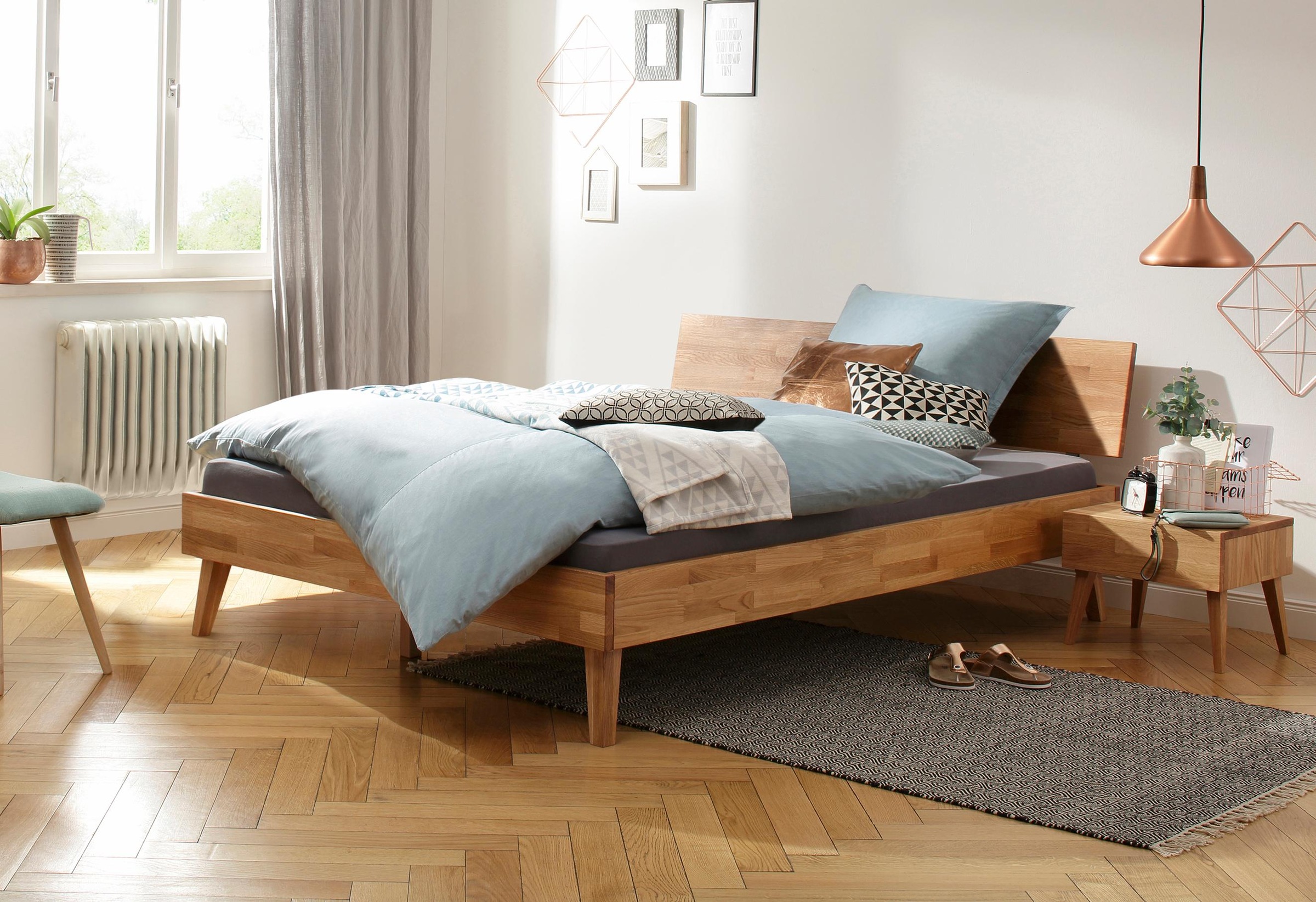 - Mit einem Kopfteil aus massiver Eiche