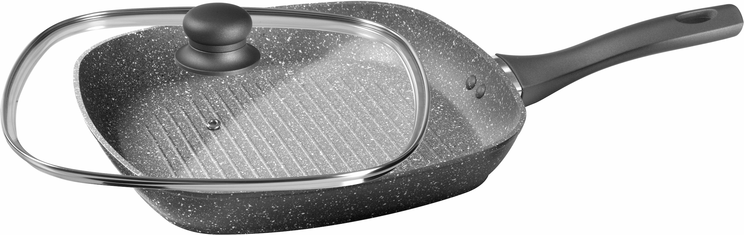 CS Kochsysteme by Carl Schmidt Sohn Grillpfanne »Emden« aus geschmiedetem Aluminium mit keramischer, marmorierter Procalon®Antihaftbeschichtung und ergonomisch geformtem Soft-Touch-Griff. Ideal für fettarmes Kochen und Braten. Incl. Glasdeckel. Gr. 28 x 28, 4 cm. Für alle Herdarten, auch für Induktion geeignet.